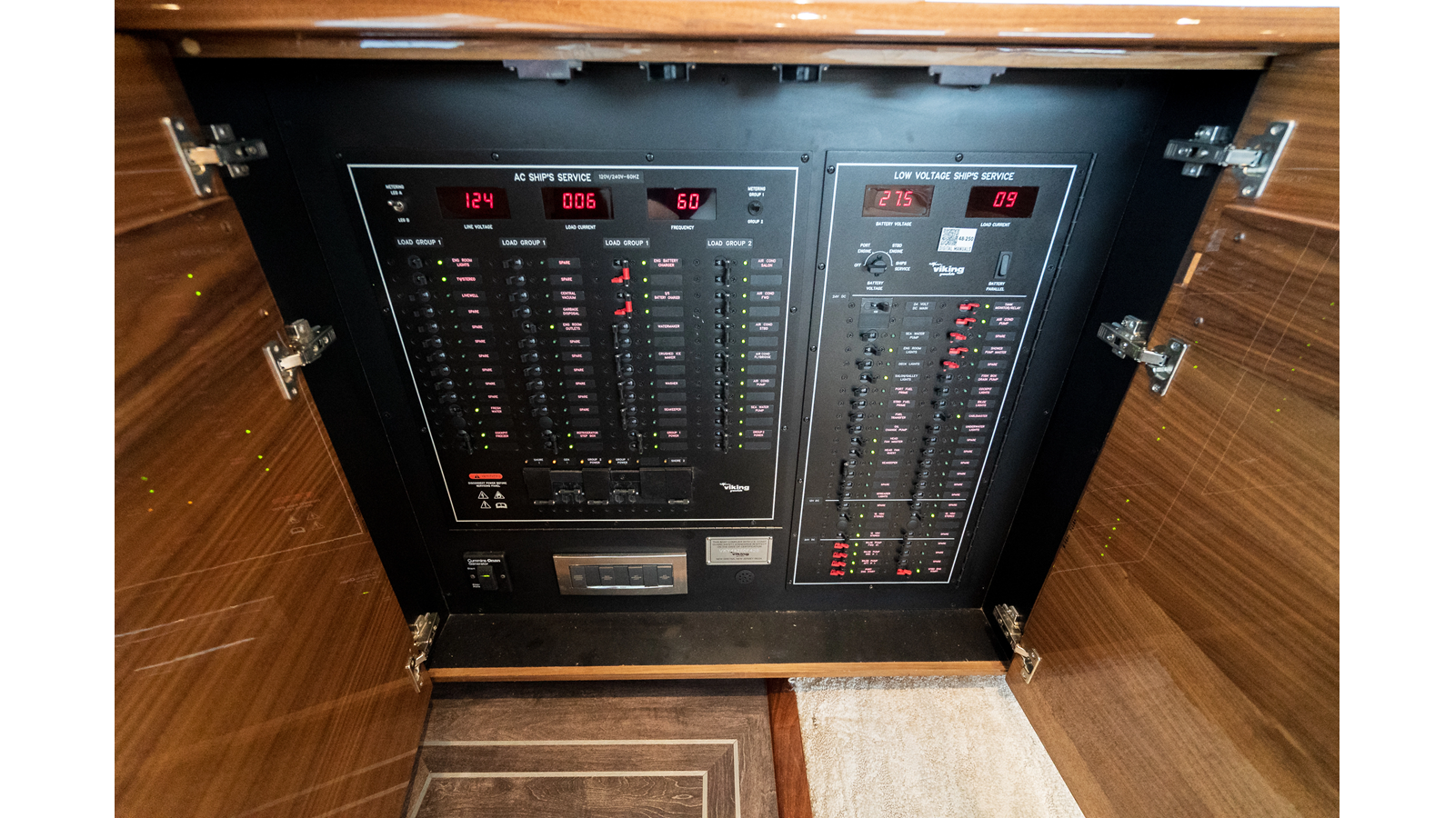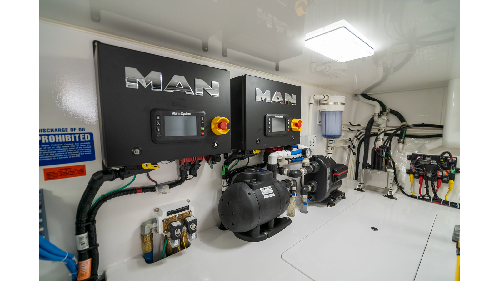 - Engine Room Entrance Package Including Gauges For Digital Tachometer, Engine Water Temperature, Engine Oil Pressure, And Engine Room Mounted Engine Start And Stop Switches For Easier Viewing And Accessibility