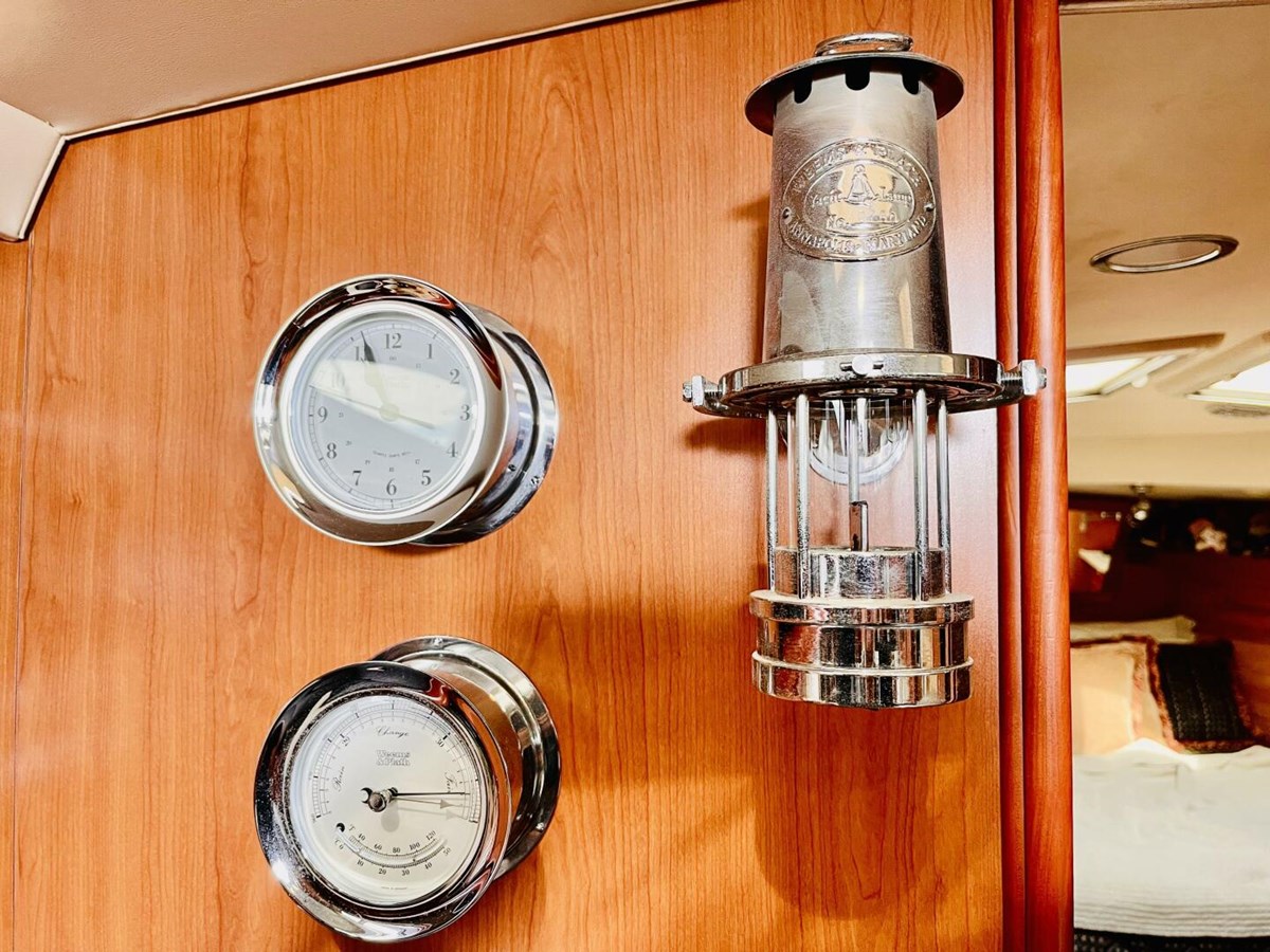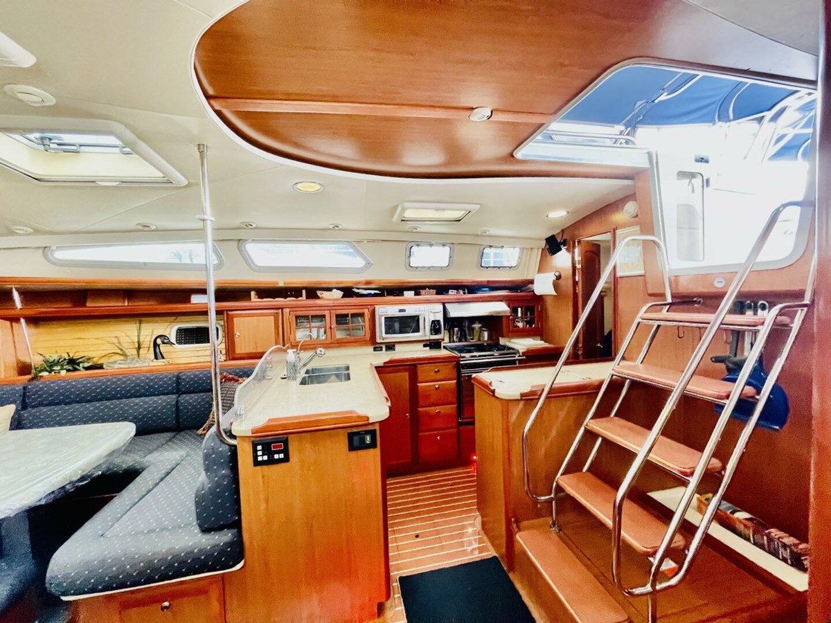 Below-decks you will find she has 6' 9" of headroom, abundant natural light, and the highest quality woodwork and a highly functional extremely spacious layout. With three private cabins, two heads and a separate shower, an enormous salon with a large flatscreen and Bose Surround Sound, and a fully equipped navigation station/office area. The galley is perfect with expansive counter space, a deep double sink, two refrigerators and two large freezers, microwave oven with built in coffee pot, and a stovetop hood with fan over 3-burner propane stove and oven. The master stateroom has a centerline queen, hanging lockers and drawers, and a large shower separate from the head. The aft cabin has a built-in washer/dryer. She would be a great place to work and liveaboard.