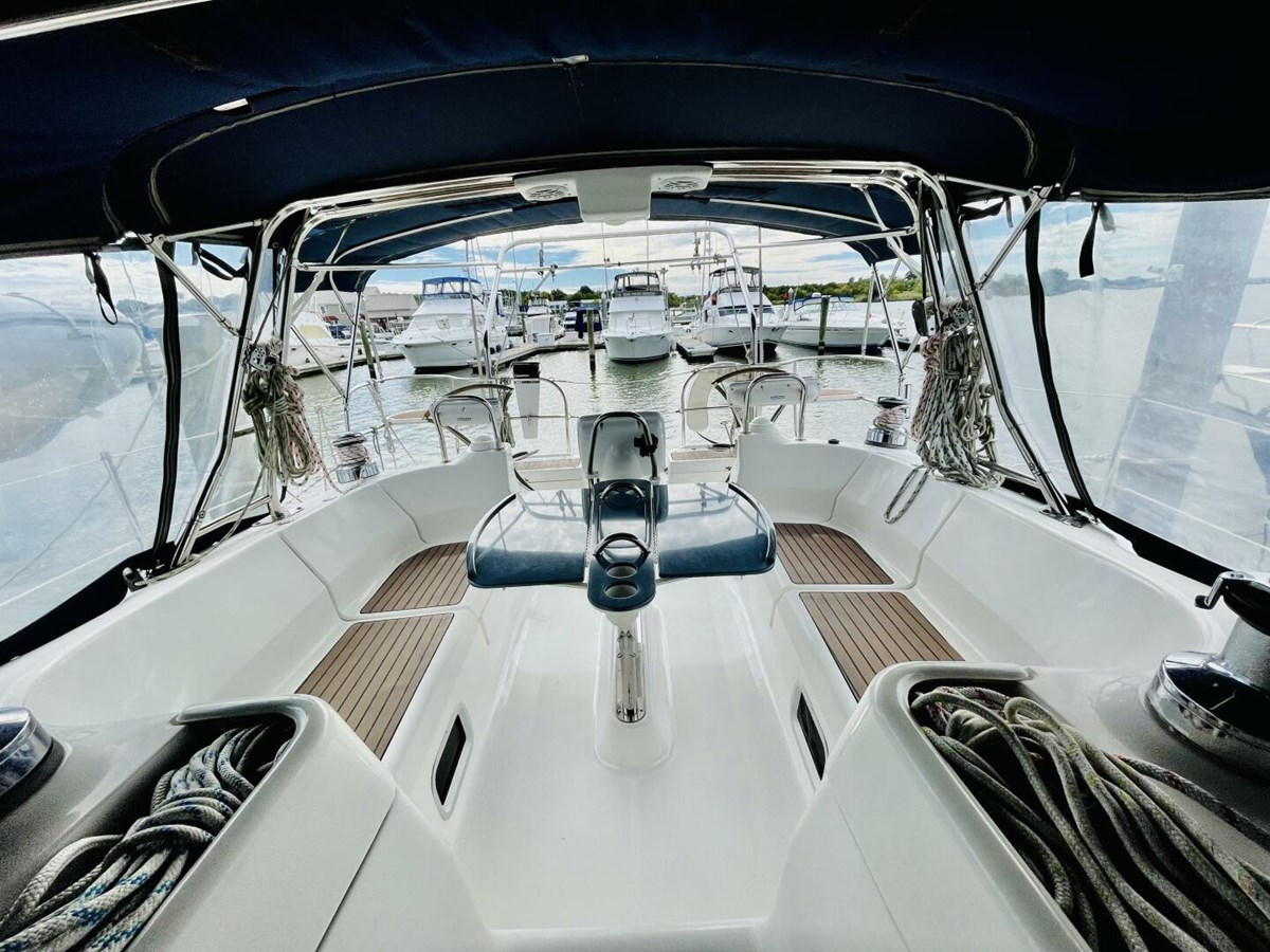 ST60+ Depth sounder, and a Raymarine ST60+ Tridata Display and i70MFD for engine performance monitoring. Aside from her appointed electronics, her turbo charged, 110 horsepower Yanmar powerplant provides plenty of power to dock or get to where you need to be when under sail is not ideal. Her feathering Maxprop provides less drag, increasing her cruising speed. She boasts a 12-kw generator to keep you powered fully under sail, under power, or on the 88lb Delta hook with a Lewmar windlass. Her windlass locker has a deck and anchor washdown to keep that anchor locker and deck ship-shape. She has a 3-piece full-boat winter cover to protect her during her layup period. Sale includes tender, outboard, and old Main/Genoa sails.