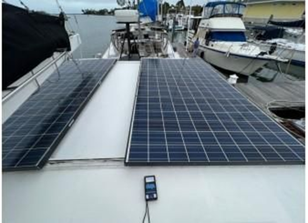 Includes an exterior shower in the aft cockpit area. Also included is a stainless steel bow pulpit connected by two separate vinyl coated life lines running the full perimeter of the vessel and connected to hard mounted stainless steel stern mounted wrap around railings. She also has various exterior storage lockers for storing outdoor items, such as fenders, mooring lines, etc.