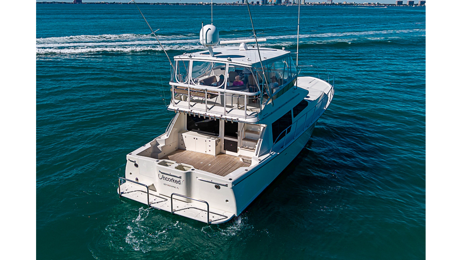 Renowned for her exceptional seakeeping ability and wide beam, UNCORKED delivers a confident offshore ride. Her stability and offshore capability do not compromise the comfort and interior volume expected of a true cruising yacht. Wide side decks, a substantial cockpit, and a commanding flybridge make her equally well suited for fishing, cruising, or entertaining.