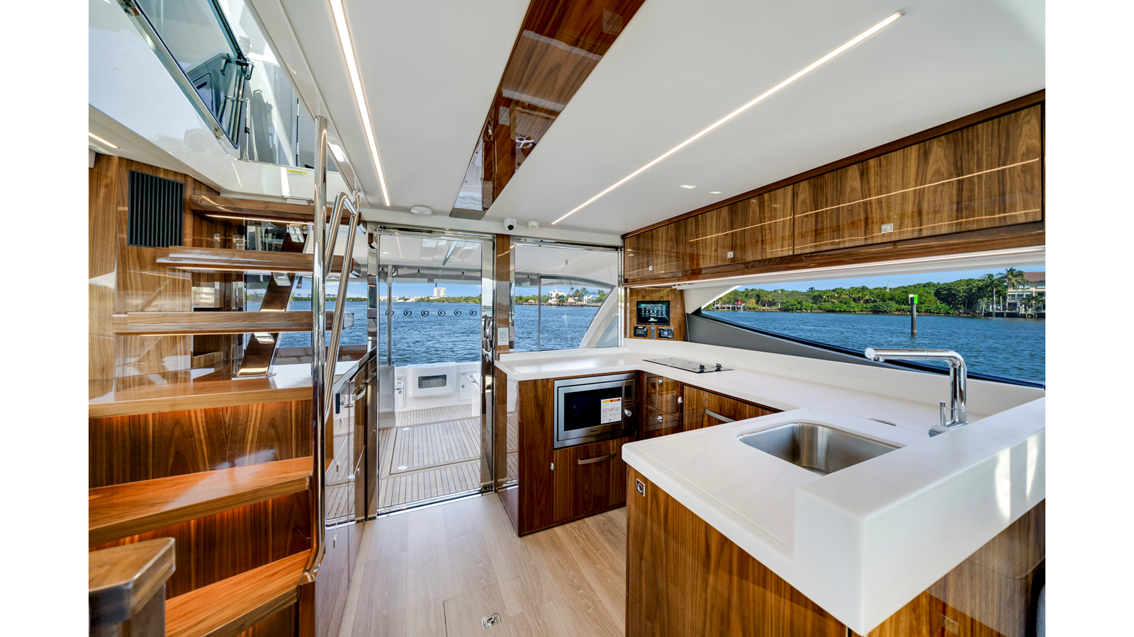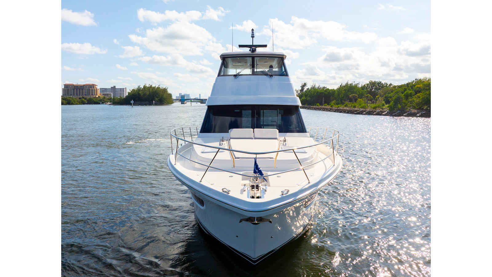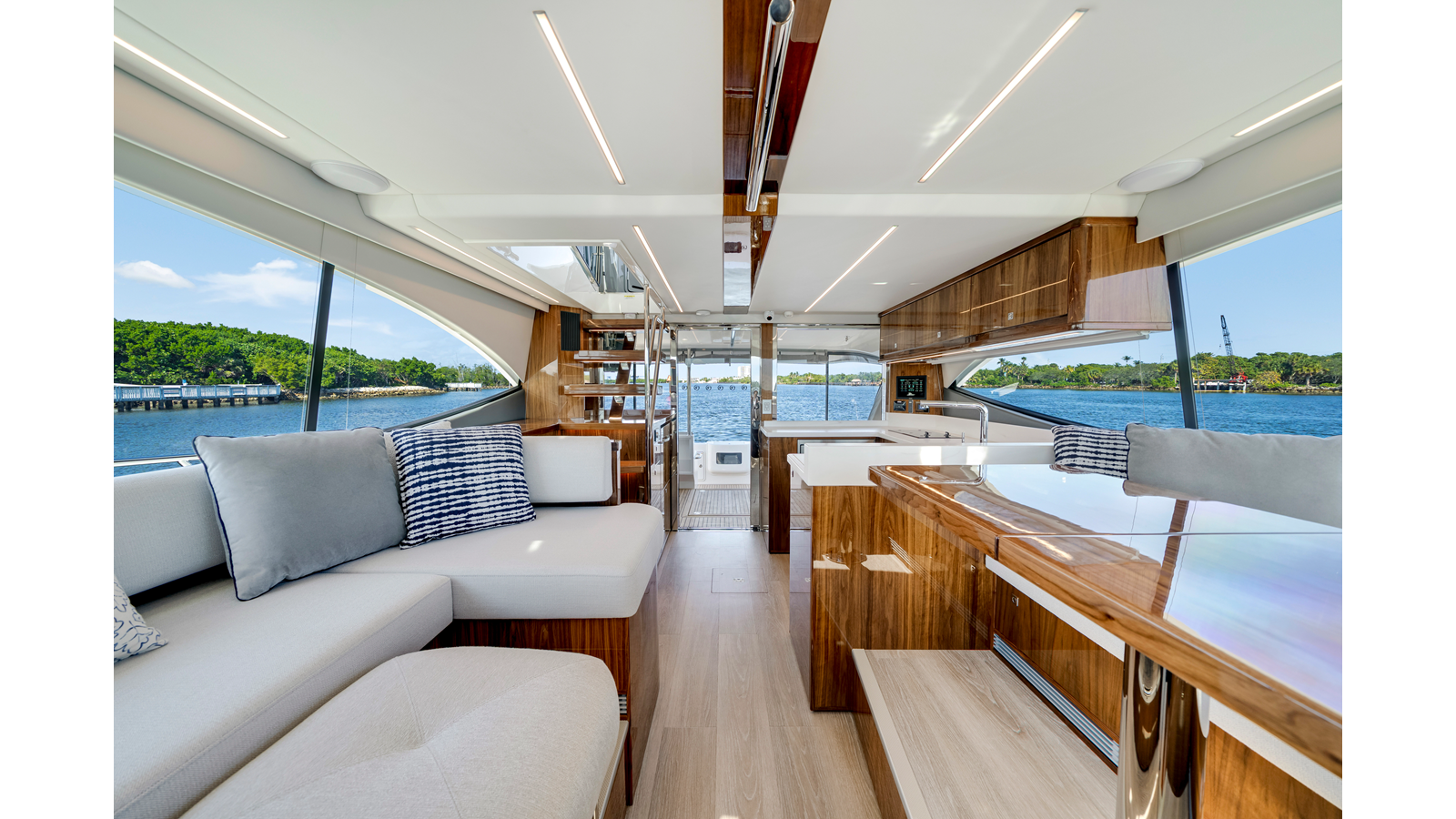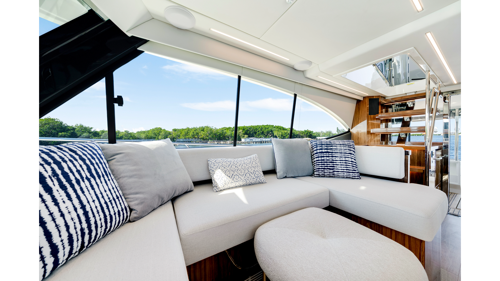 Designed by 4D Designs in collaboration with the Riviera design team and built in-house to our exacting standards on Australia’s Gold Coast, the new 50 Sports Motor Yacht is a remarkable package. Offering all of the essentials you’d expect to find on a much larger yacht, including foredeck relaxation zone, walk-around side decks, all-weather alfresco mezzanine entertaining, spacious luxurious saloon with internal staircase to an enclosed air-conditioned flybridge and state-of-the-art helm. The generous three cabin/two-bathroom accommodation deck is bathed in natural light from tinted glass hull windows and features a magnificent full-beam master stateroom.