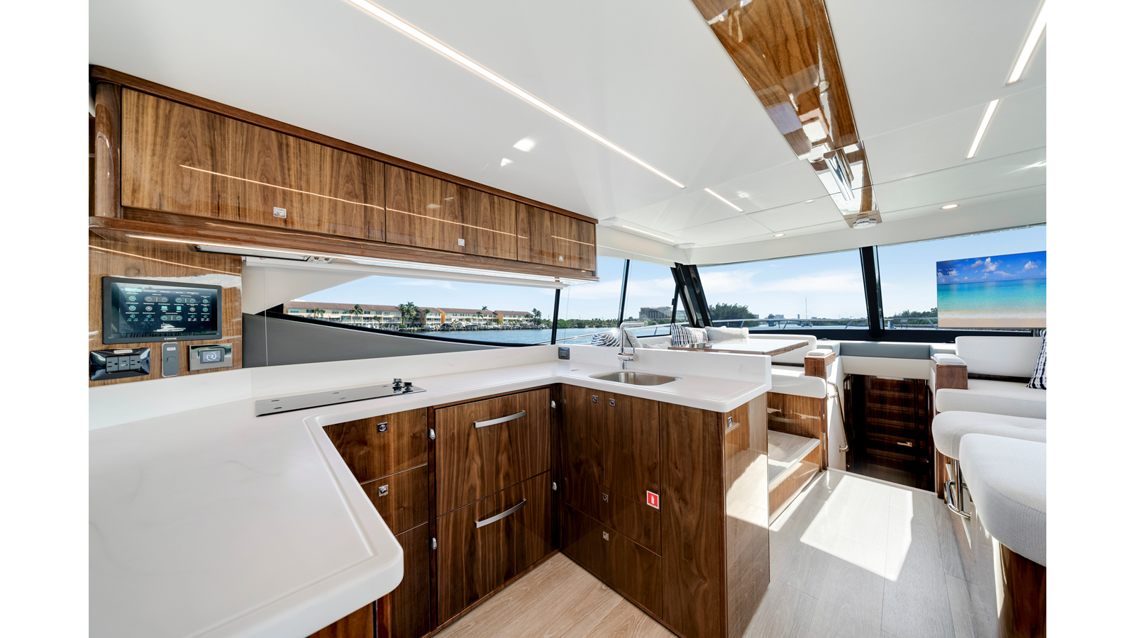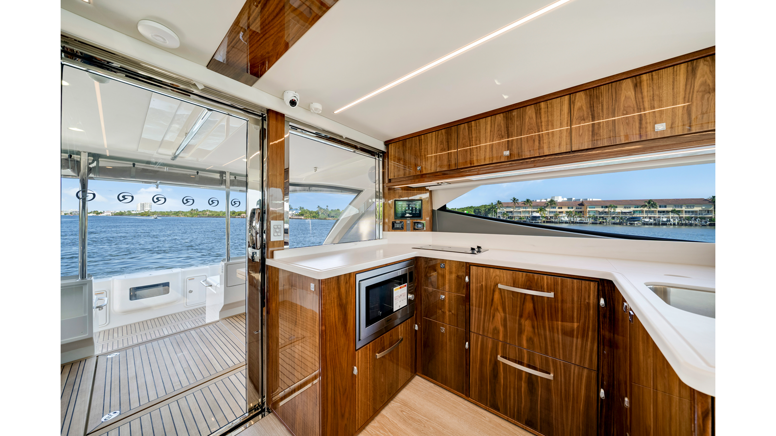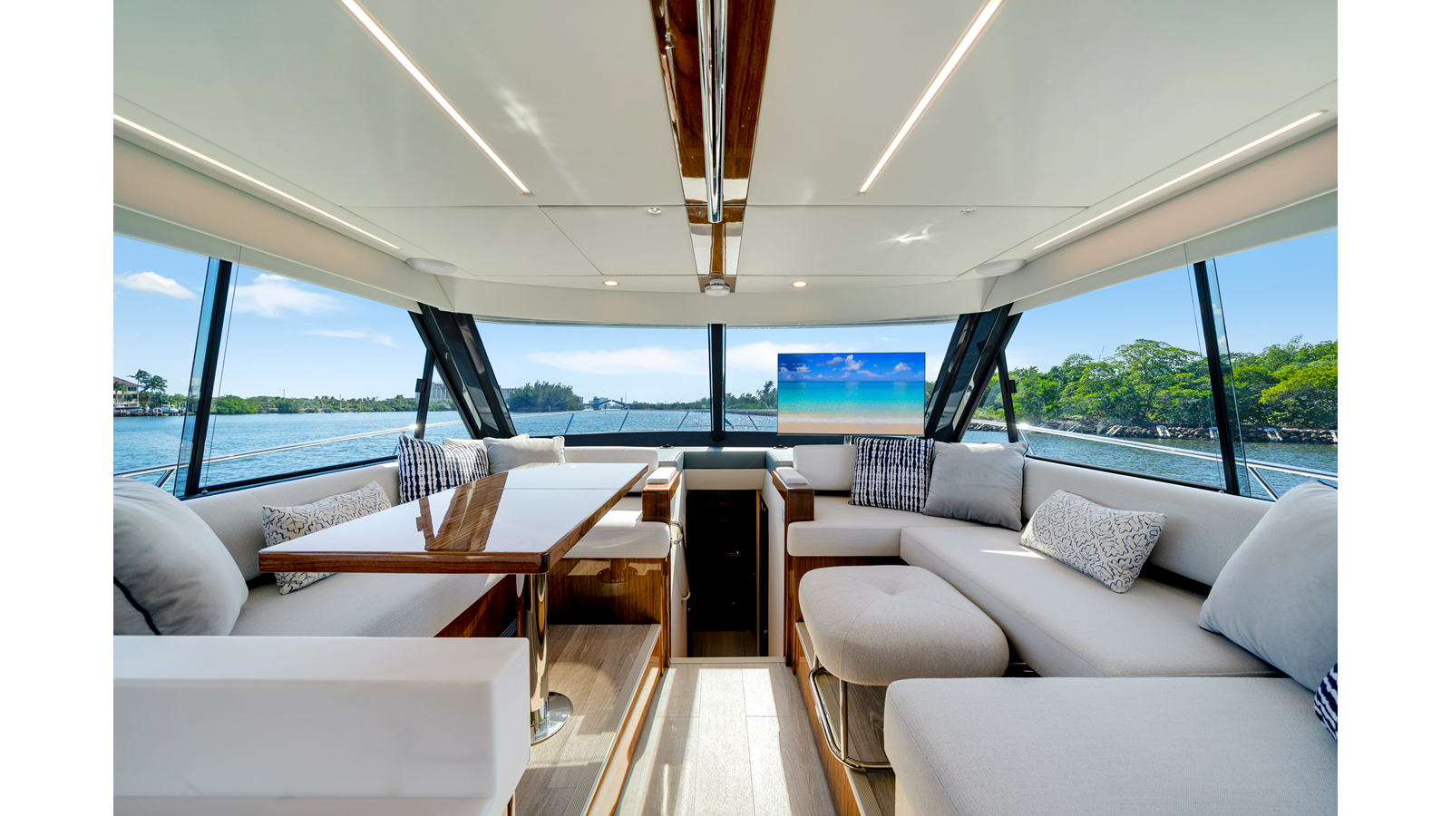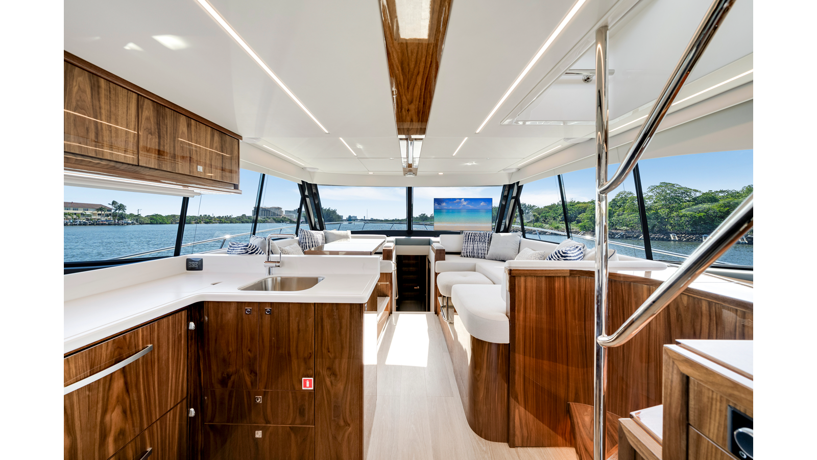 - Mezzanine - 32" TV mounted oì the hardtop stbd side mezzanine on a stainless steel mount, connected to cockpit speaker system