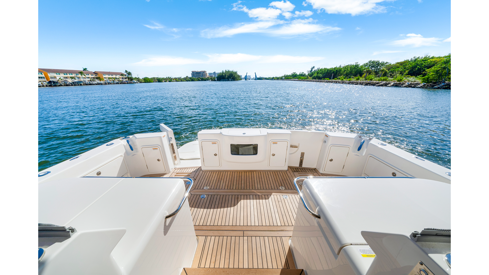 - Sun pad on fwd deck – fabric upholstery to match cockpit selection – closed cell foam – stainless steel rails – storage beneath – lift up backrest – white stamoid cover – drinks holders