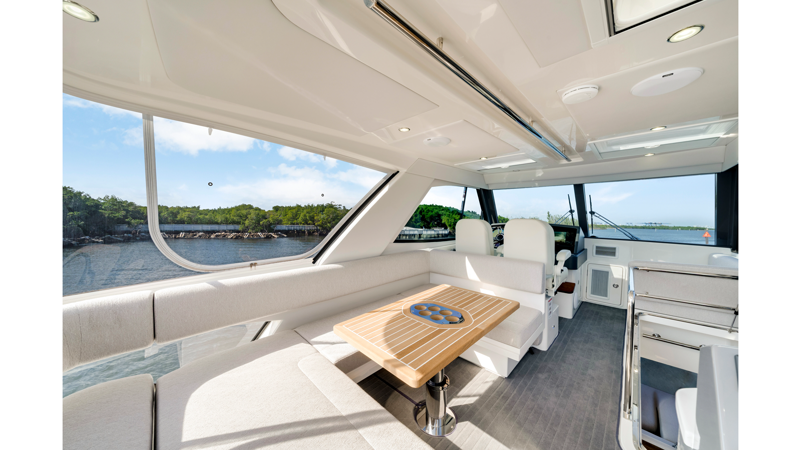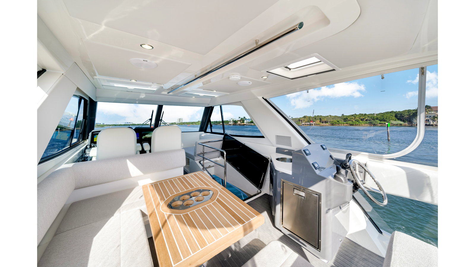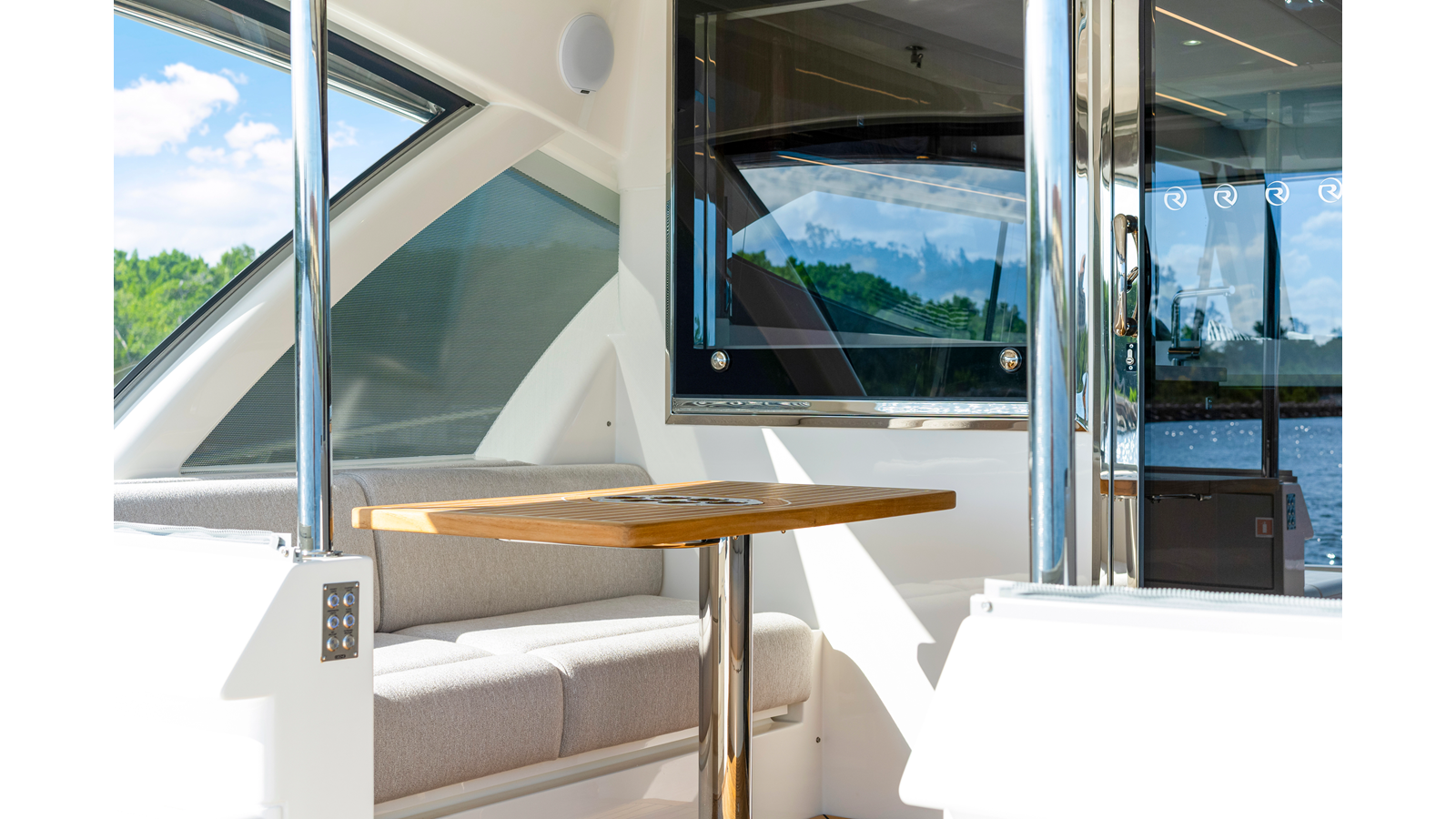 - Porthole (x2) opening round clear glass with alarm to helm, stainless steel and îyscreen
