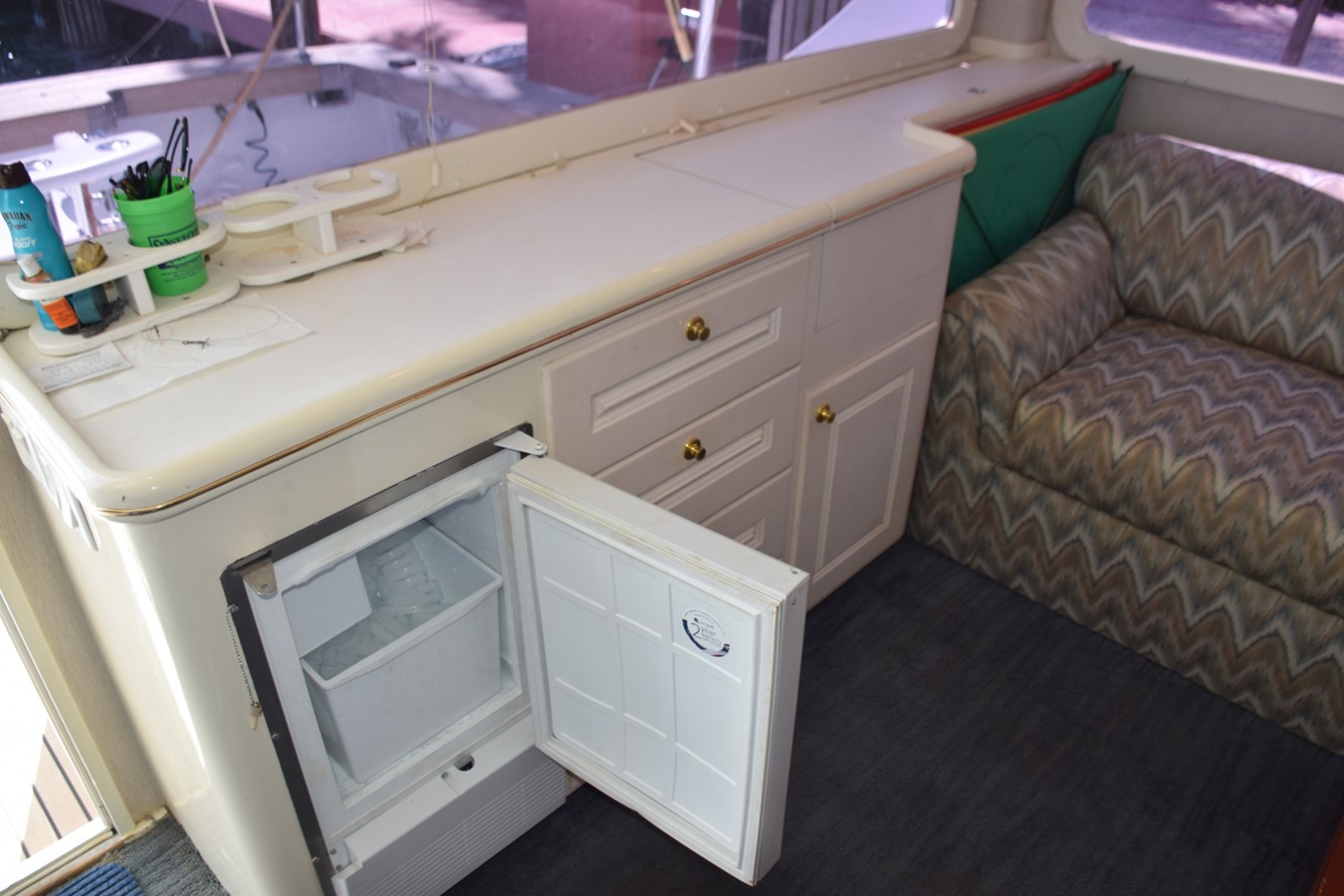 - Cockpit freezer, stainless lined, in tackle center