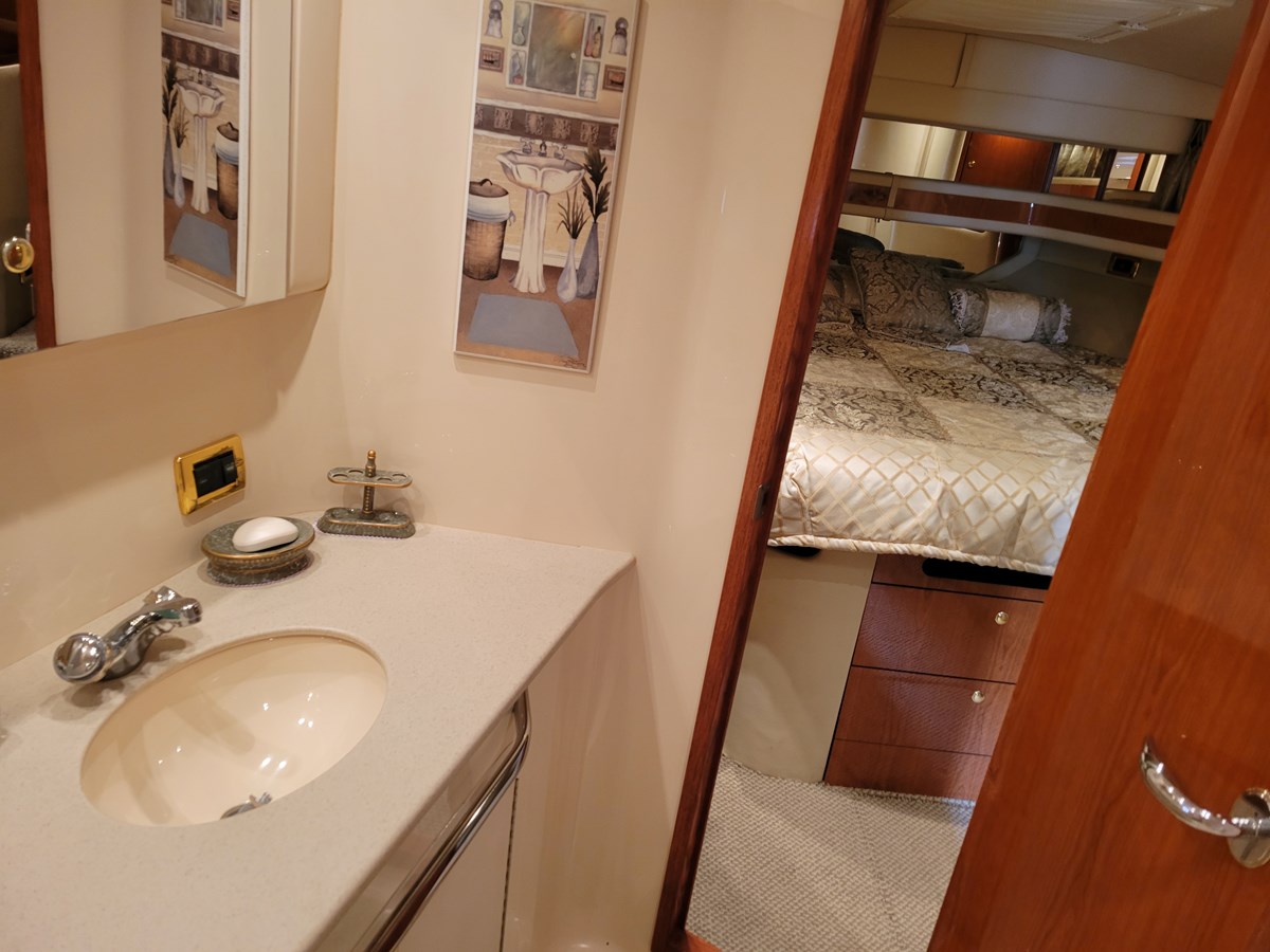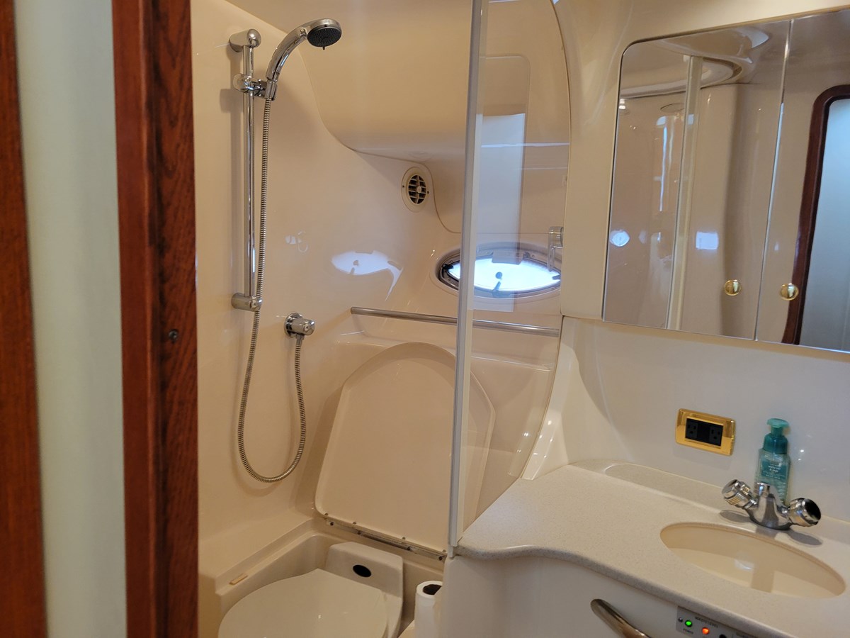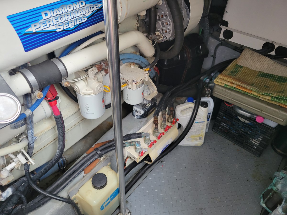 The 450 Express Bridge gives a bridge with great visibility for a driving station with plenty of room for your party onboard. Complemented by an uncluttered cockpit and spacious cabin with three generous bedrooms and two full heads. If you are looking for a super clean, well maintained and never used for charter yacht, this is the one. Pride in ownership is seen in every space on this yacht. The engine room is clean and uncluttered.