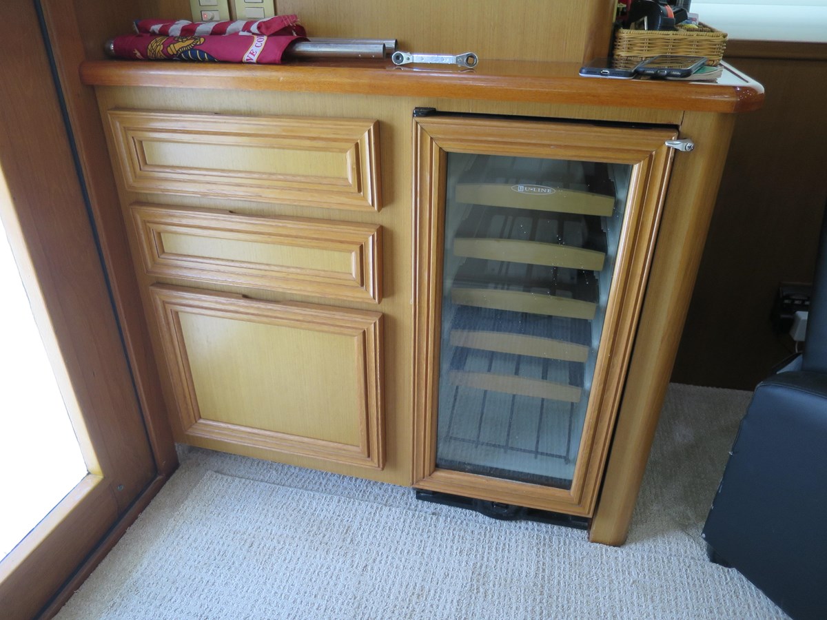 Granite counter tops with cherry cabinetry, under-counter SubZero refrigerator and freezer, Euro Kera three burner electric stove, GE Profile microwave/convection oven, 20-gallon electric water heater, 110-volt fresh water pump, teak dinette table, Magic Chef cloths washer and Avanti dryer, Uline wine cooler.