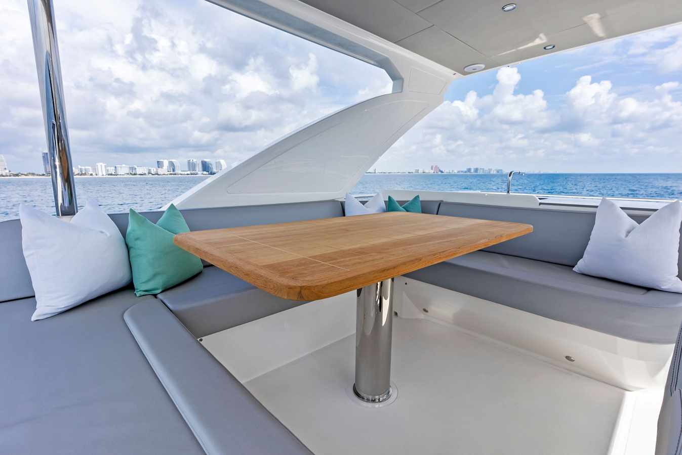 Powered by twin Volvo Penta IPS engines, the 52 FLY delivers smooth handling, efficient performance, and easy maneuverability, making it ideal for both new and experienced owners navigating U.S. waters.