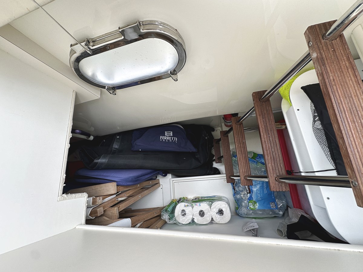 This 2014 Ferretti 530 Flybridge has been well maintained by this second owner and is a luxurious and sleek motor yacht that seamlessly combines Italian craftsmanship with innovative design. Measuring approximately 55 feet in length, PRIMO features a contemporary interior with elegant lines and large windows that enhance its aesthetic appeal while allowing natural light to flood the salon & galley.