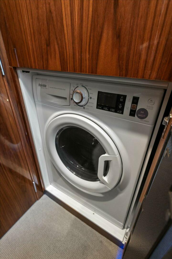 GENERAL SPECIFICATIONS All exterior stainless mirror finish with ground polished welds, 316 marine grade Antifouling: 2 coats epoxy undercoat, 2 coats antifoul with Propspeed coating to propellers & Pod Drive gear Fenders x 4, dock lines x 4 and boat hook Fire extinguishers, portable x 4 Owners manual - high quality and comprehensive Safety labels - English language Washer/Dryer combination machine (Premium Brand) located in companionway