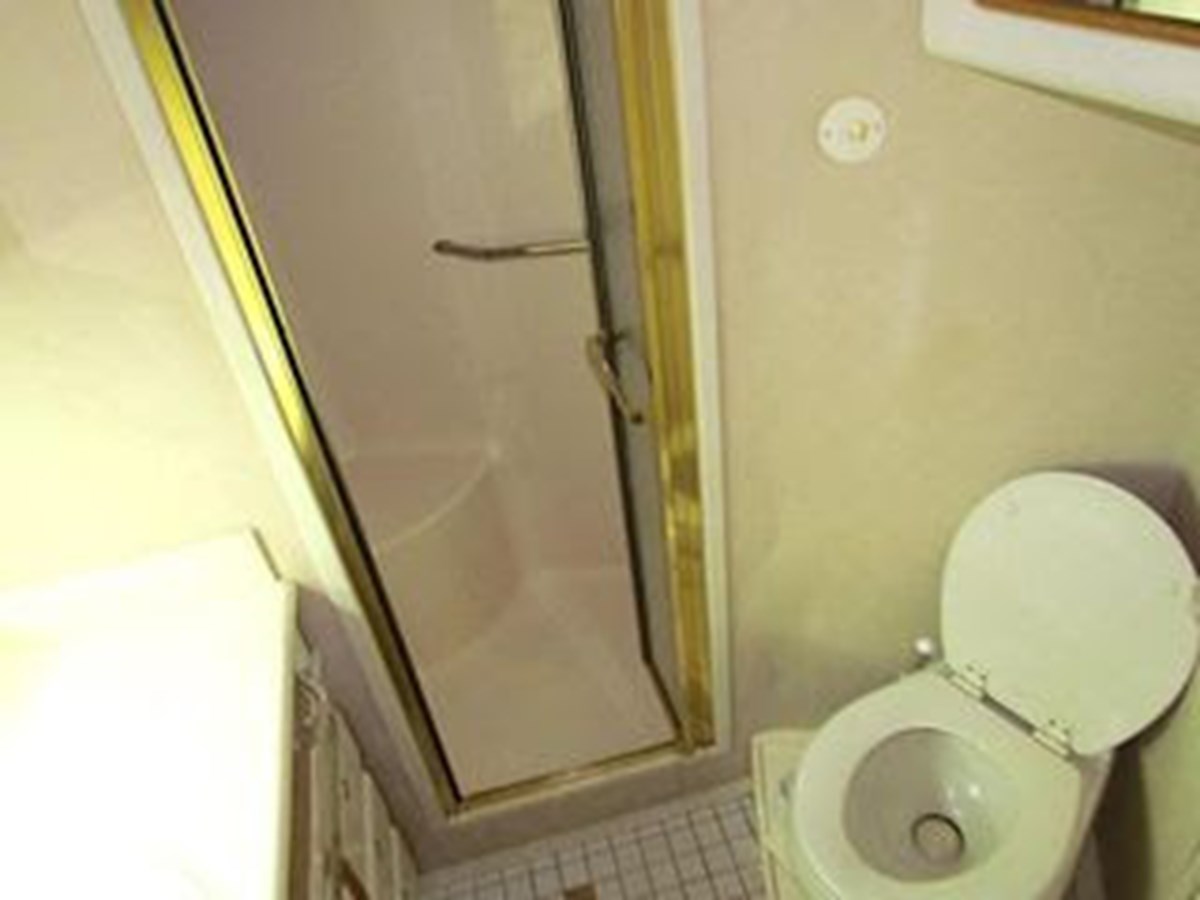 In the bow the master cabin has a V berth off to starboard aft of the forward cabin is the second cabin which has a double bed and to port is the third cabin with two bunk beds. There are two heads, one for the forward cabin and a shared head for the other two cabins.