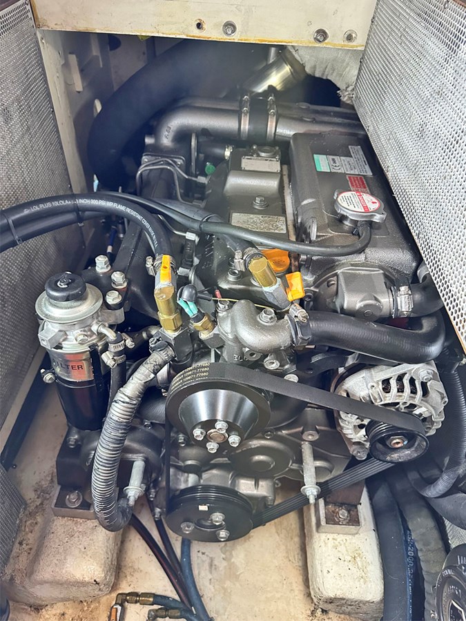 - Mechanical new items: engine, engine beds, cutlass bearing, CV shaft, thrust bearing, Aqua Drive, FRP exhaust tube, custom exhaust riser, upgraded exhaust hose to 3”, vented loops, modified muffler design, engine and Gen thru hull strainers, sea strainers, max prop rebuilt, tank monitors, water heater, Accumulator tank, oil change system, washdown pump, Soundown insulation