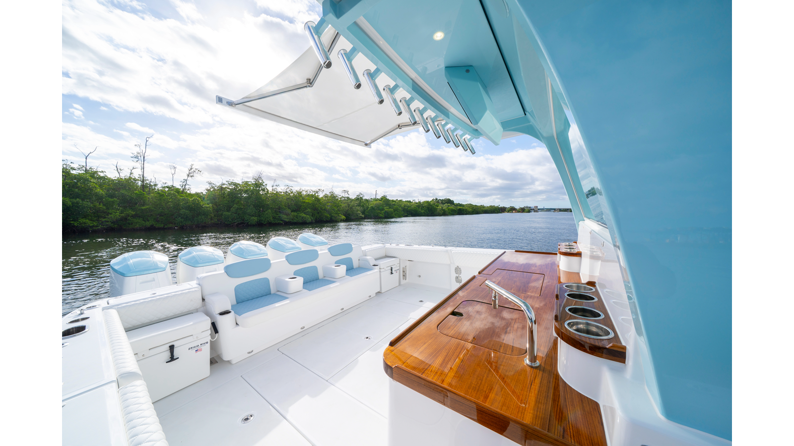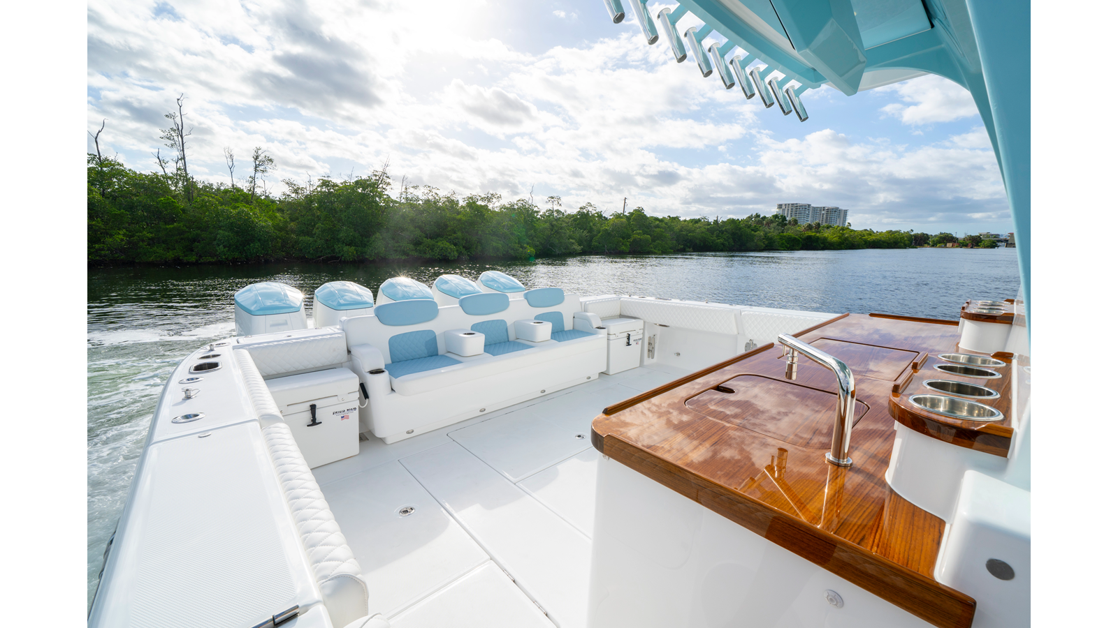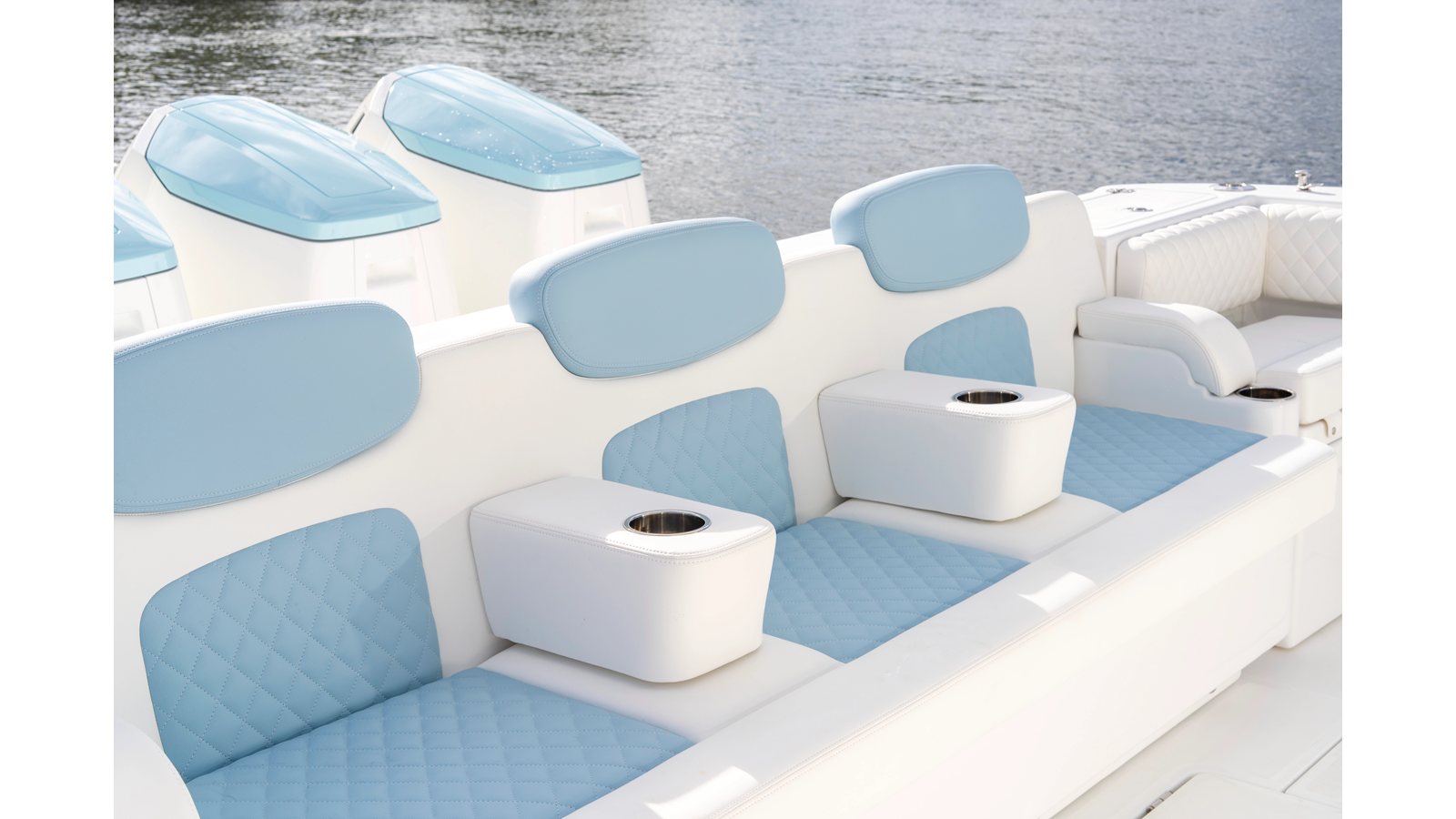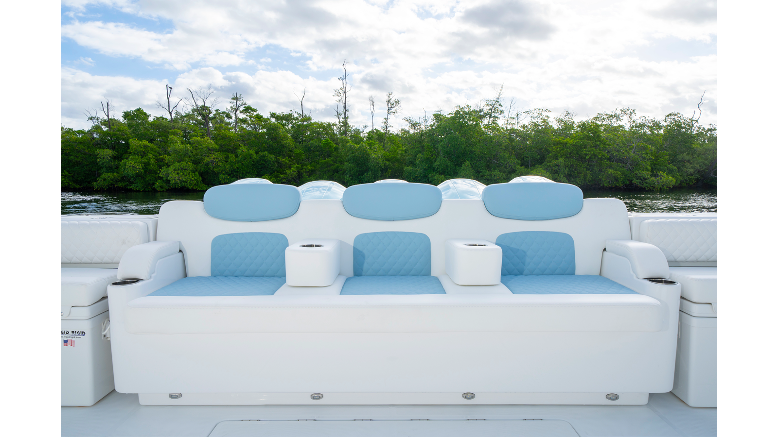 - Transom Cooler Seats, 38QT, Port and Starboard w/ Cushions
