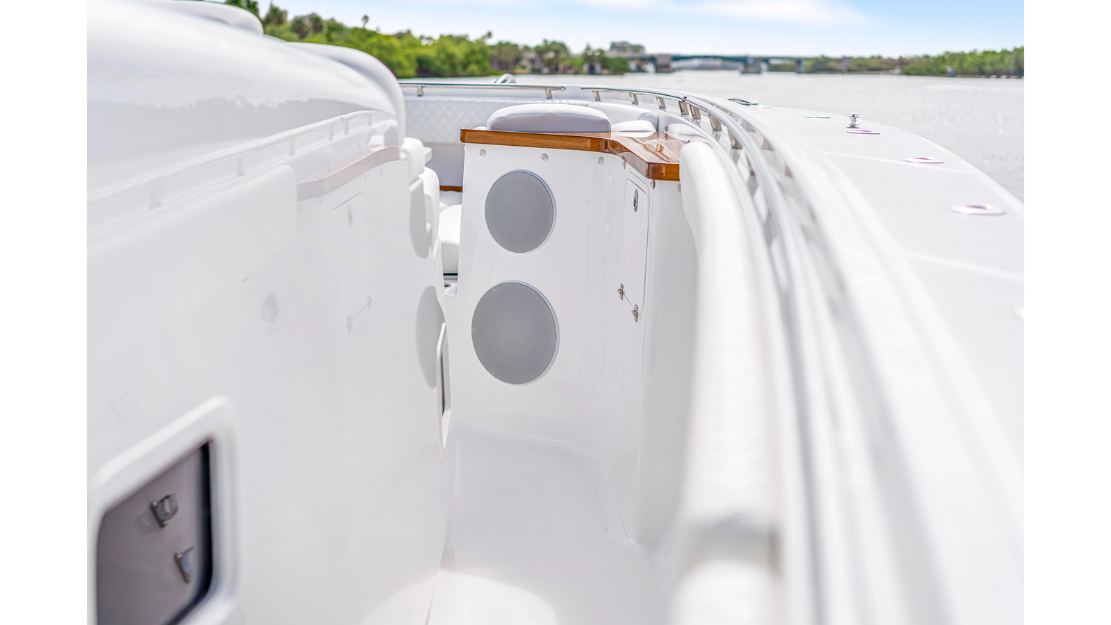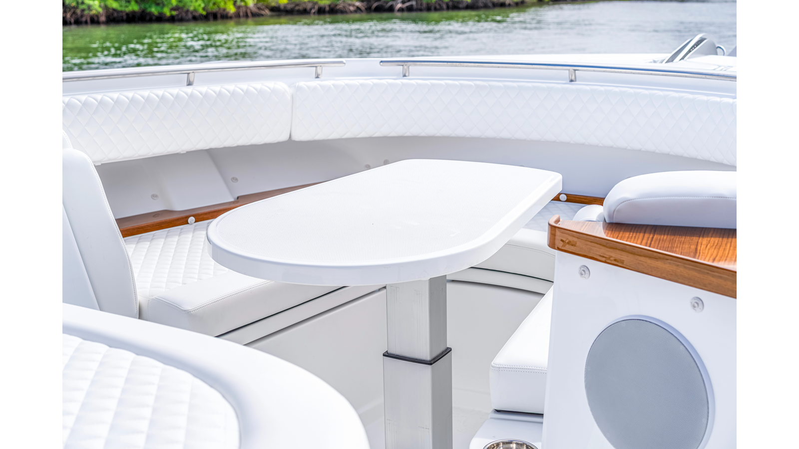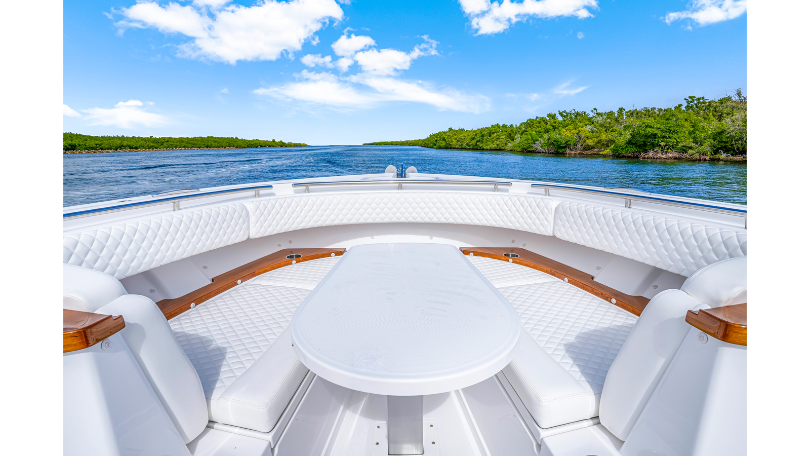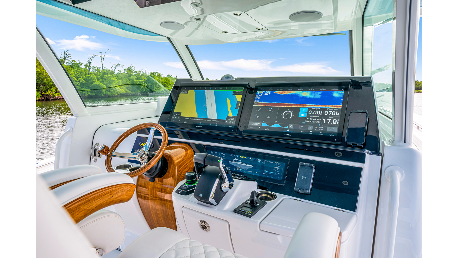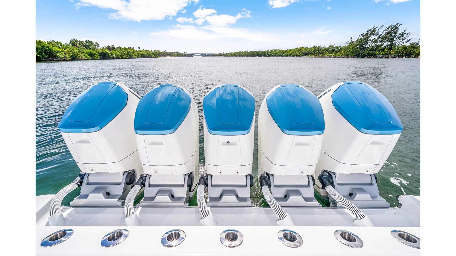 Notable Features: • Quint Mercury V12 600 HP • SeaKeeper 9 • Starlink Wi-Fi with Roku connection • Garmin 24" upgraded helm screens • Garmin aft-facing screen, AIS system, 6' radar, XM Weather • Helm A/C plus secondary cockpit A/C unit • Tempered glass aft wind blocker • Electronic aft sunshade recessed into hardtop • JL Audio Luxe flush-mount speakers • Black steering wheel with power knob • Bentley or diamond pattern premium stitching • Gem Lux outriggers and rod holder upgrade • Electric reel outlets • Downrigger weight bucket • Transom seat with dual 25-gal baitwell and molded armrests • Port and starboard 38qt transom cooler seats • Fisher Panda 15KW generator with water-separated exhaust and 55-gal diesel tank • Underwater lighting • Rainfall shower • Stainless steel rub rail accent • Loaded with additional upgrades