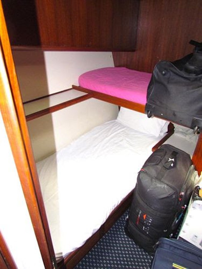 Interior features include 3 cabins, a forward V-berth with a queen size bed and an en-suite head with shower. To port aft of the forward cabin is the second cabin with two twin beds and a head with shower. On the starboard side is the third cabin with a full size bed and a head with shower.