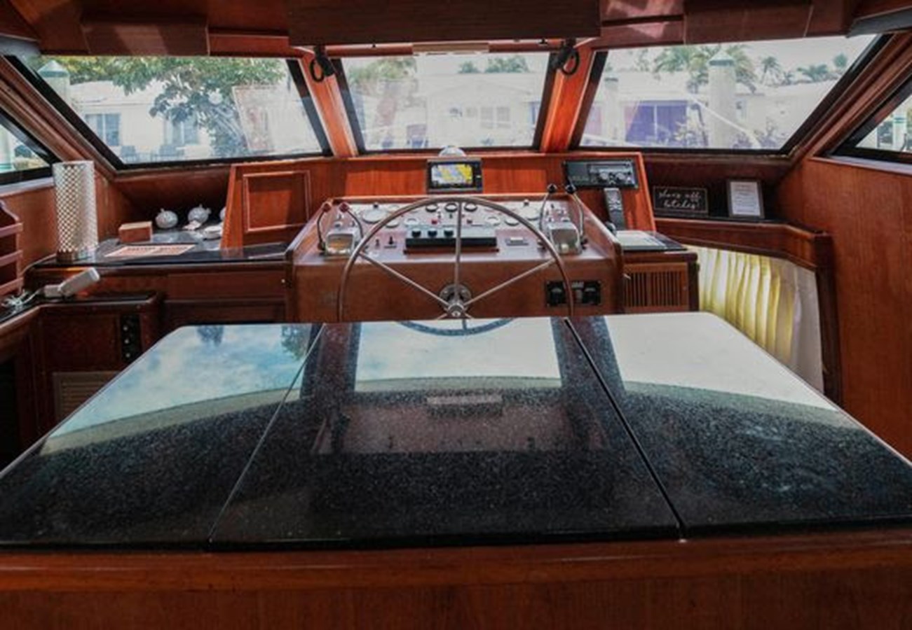 - Granite at pilot house helm, new teak helm cabinets