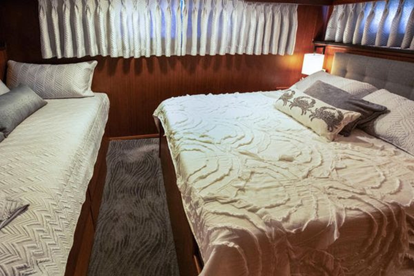 - New custom draperies, mattresses, custom bedding throughout vessel