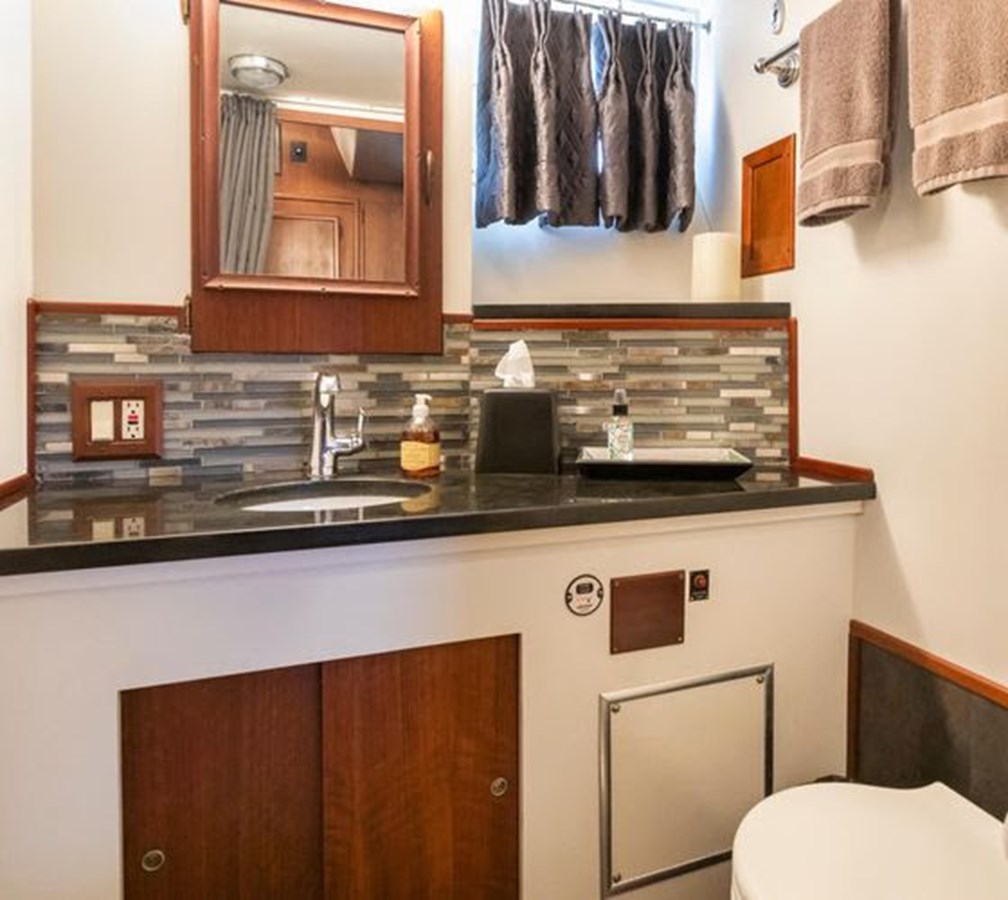 The spacious floorplan offers 3 state rooms and 3 heads, 2 showers, a large galley with dining table, and an expansive salon with French doors opening to a large aft deck perfect for dining or relaxing. A few steps down from the aft deck, the large aft cockpit provides easy water access with a swim door, oversize swim platform, a hot and cold swim shower, and ample storage for fishing gear. Two networked helms, one in the pilot house and one up on the bridge, featuring all new electronics, provide ample options while motoring. Large bridge with 12x15 T-top and seating for 8. Large fore deck with sundeck and ample seating for motoring or entertaining. This vessel is gorgeous. Please see photos & list of improvements. Perfect opportunity to travel the coast in your highly upgraded floating condo!