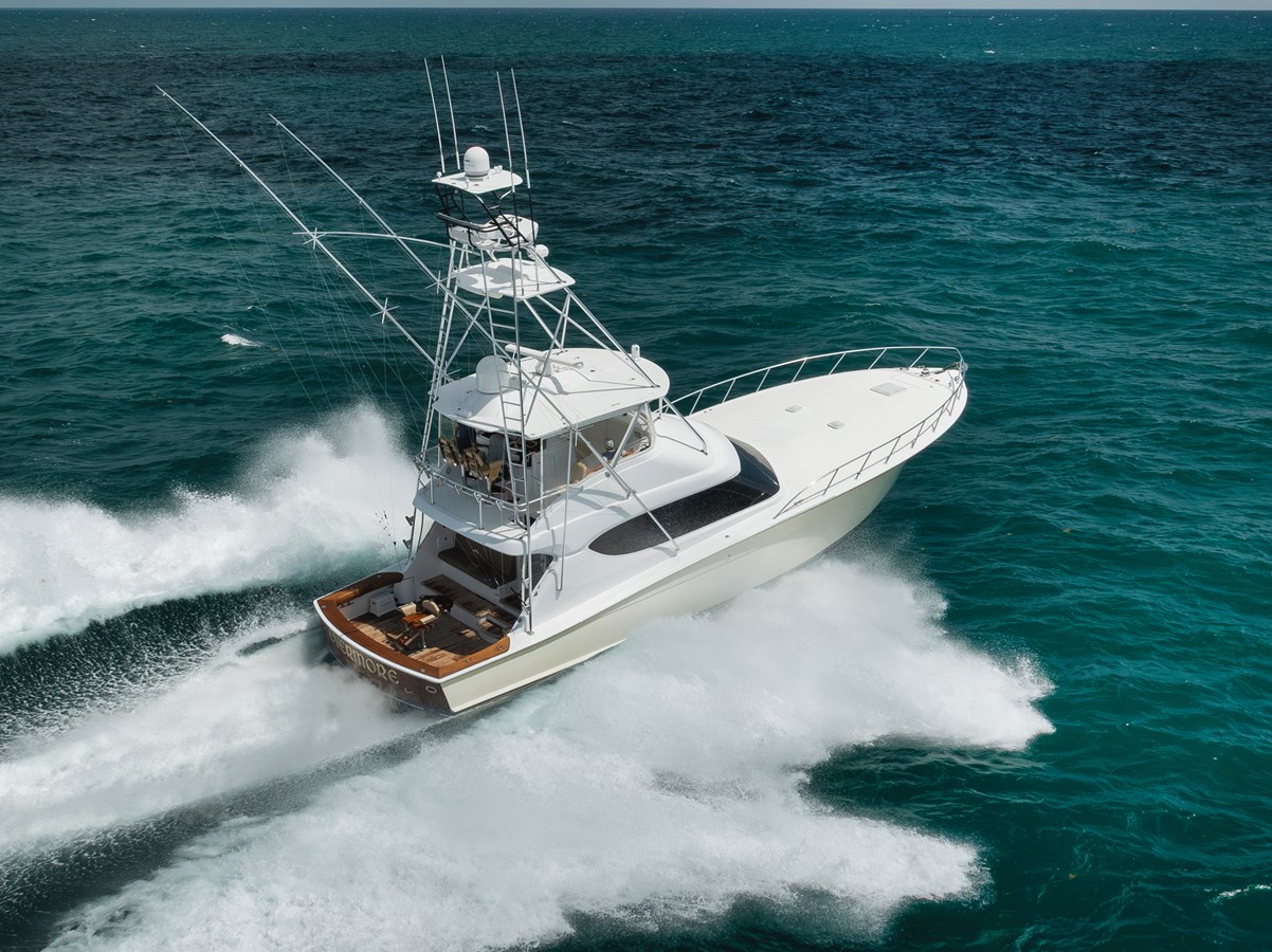 "Evermore" is a well-appointed, captain-maintained, Caterpillar-powered Hatteras GT. Upon entering the spacious salon and adjoining galley, you’re welcomed by deep, high-gloss cherry wood veneers and custom granite surfaces that highlight the signature Hatteras fit and finish. The beautifully designed interior is complemented by three generous staterooms and three heads, offering an ideal layout for owners and guests to enjoy cruising, fishing, or relaxing onboard. Renowned for its quality construction and smooth, comfortable ride, Evermore delivers an exceptional experience. Powered by Caterpillar C-32A engines, she cruises efficiently at 30 knots with a fuel burn of approximately 105 GPH and a reported draft of 4'10".