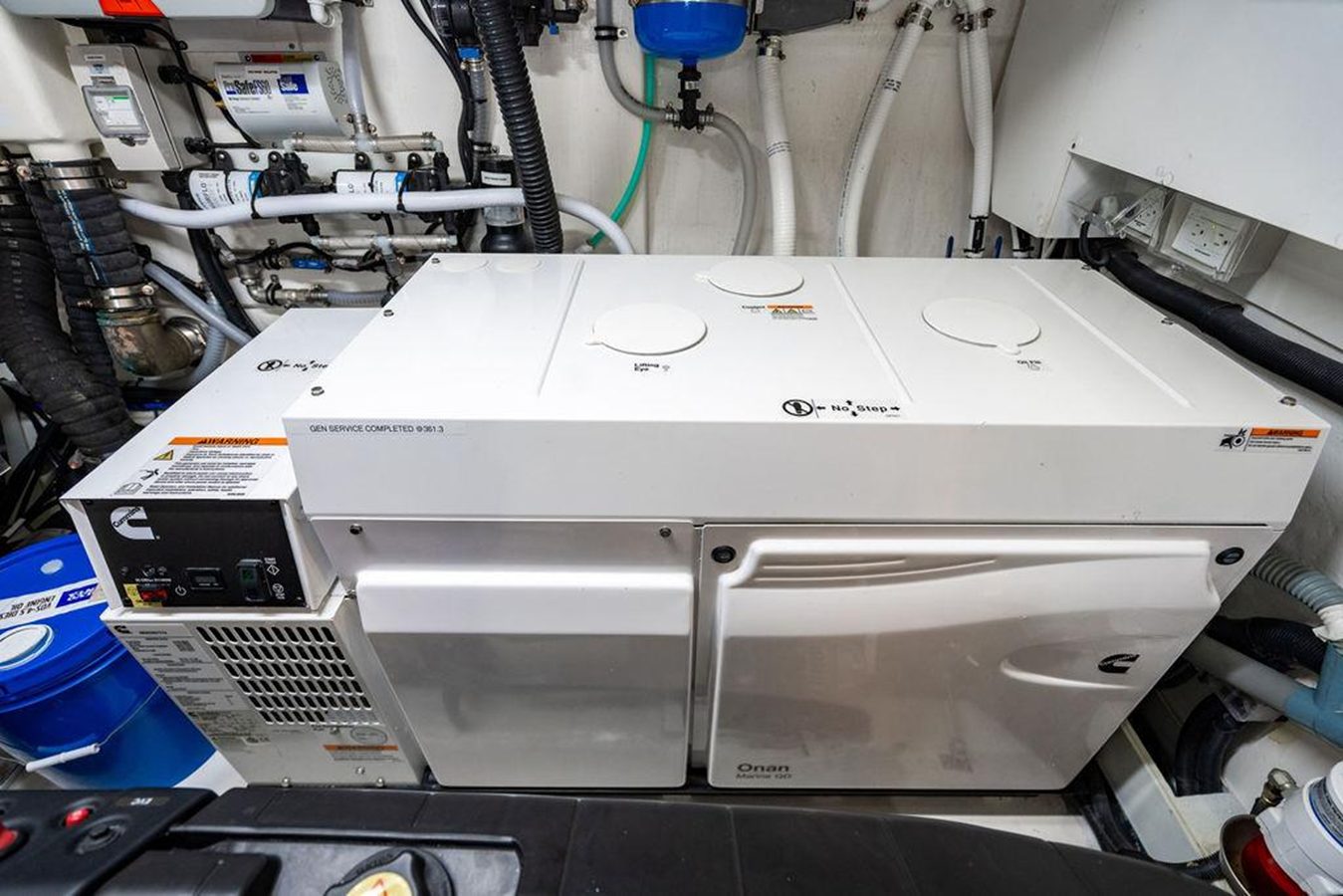The Cummins Onan generator features a water separating muffler, sound shield, remote stop-start function, state- of-the-art diagnostics and hour meter. The generator's optimized mounting system greatly reduces vibration.