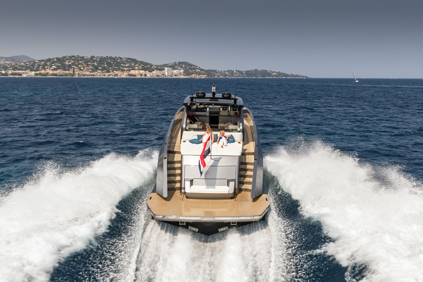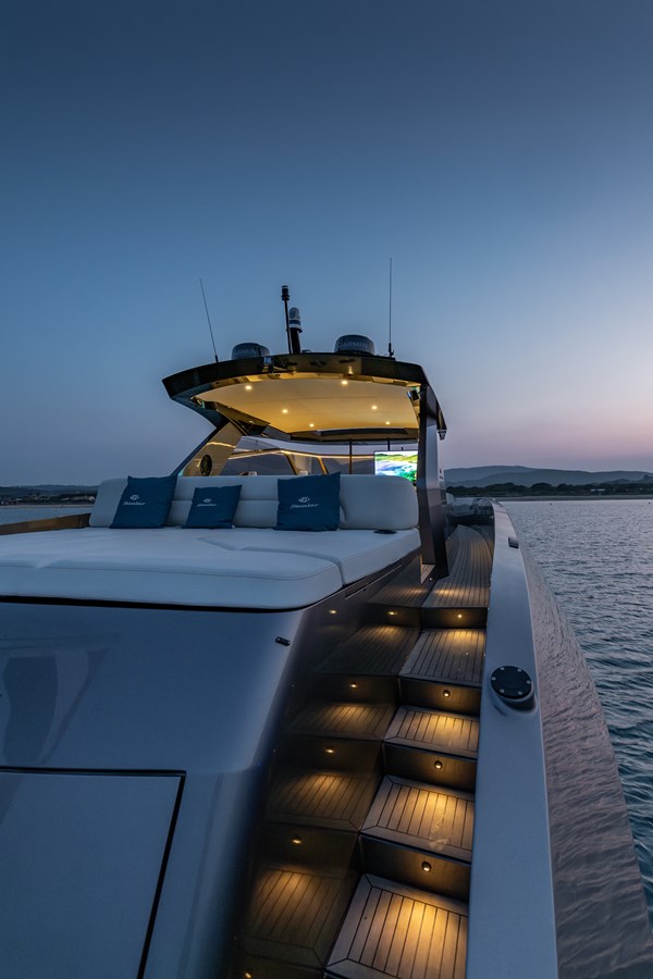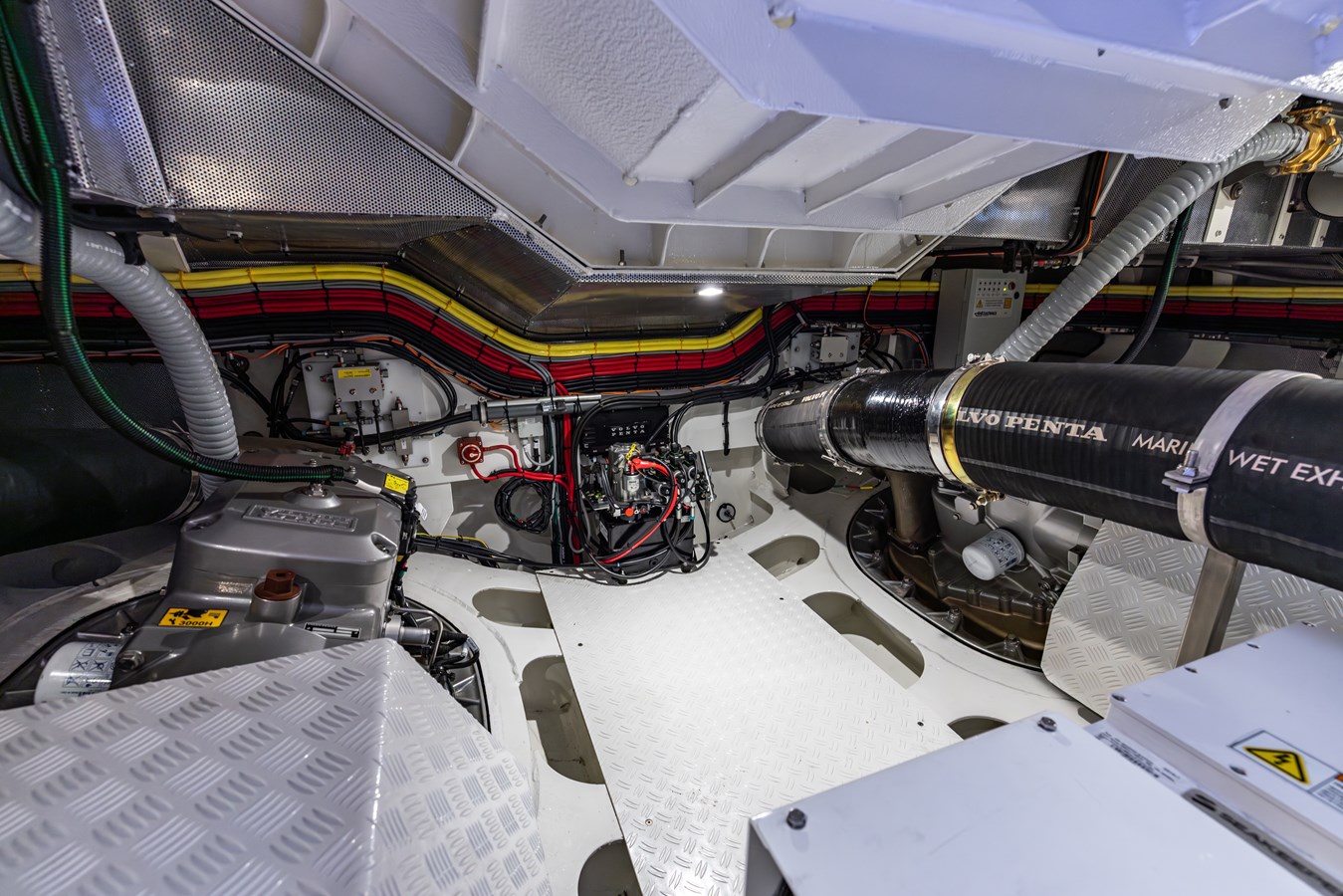Power & Stability: Equipped with Twin Volvo Penta IPS 1350 engines , it hits a blistering top speed of 35.5 knots . To keep things smooth at anchor or at sea, it’s fitted with a Seakeeper 9 gyroscopic stabilizer .