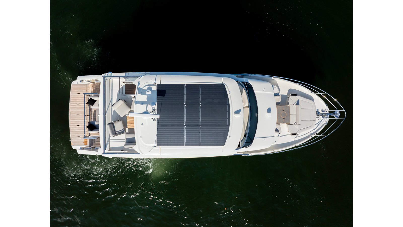 - Fibreglass Hard Top with photovoltaic solar panel system, with energy produced monitoring system integrated into the on-board domotics, with ceiling made of microfiber coated panels, with dimmable lights