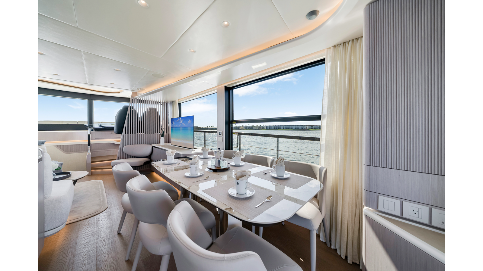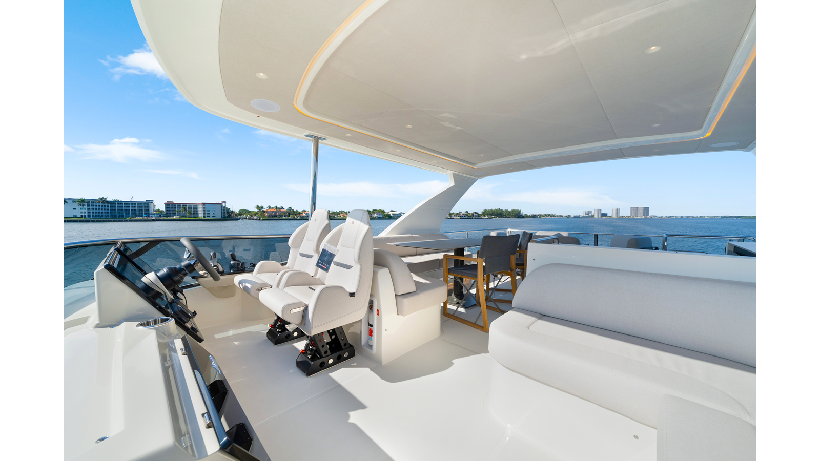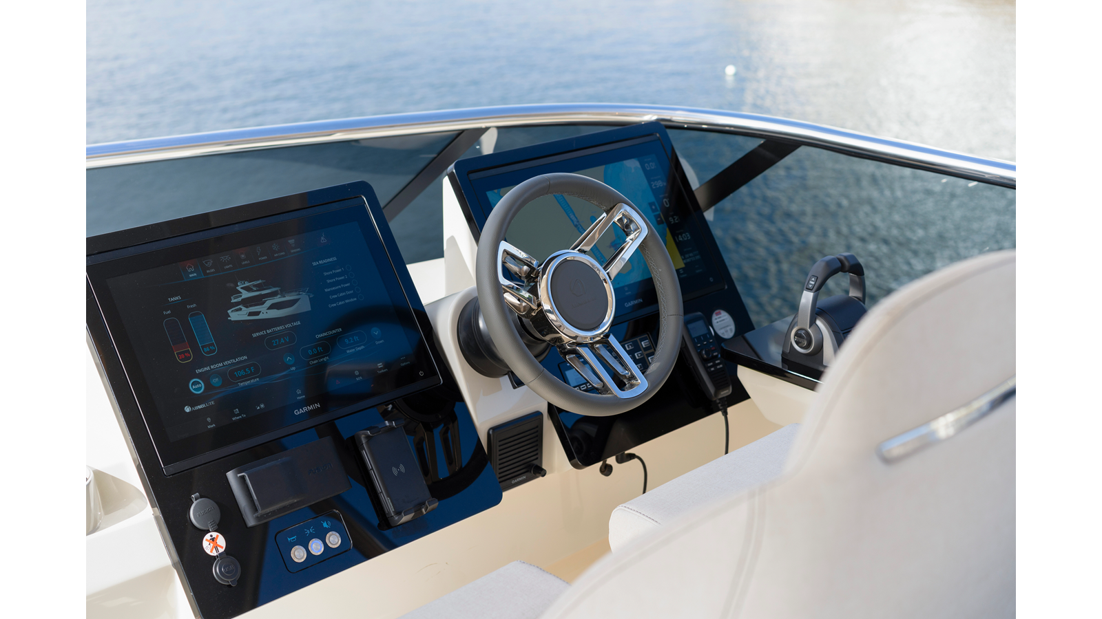 - Smartphone wireless charger on main deck and flybridge dashboards (two)