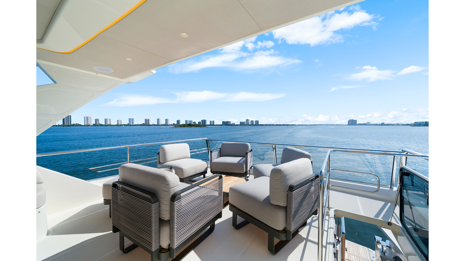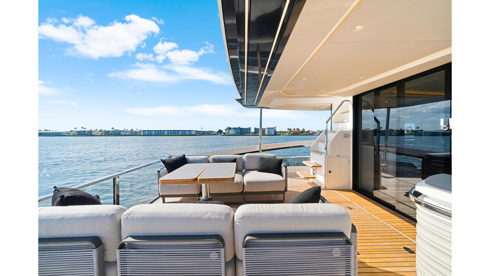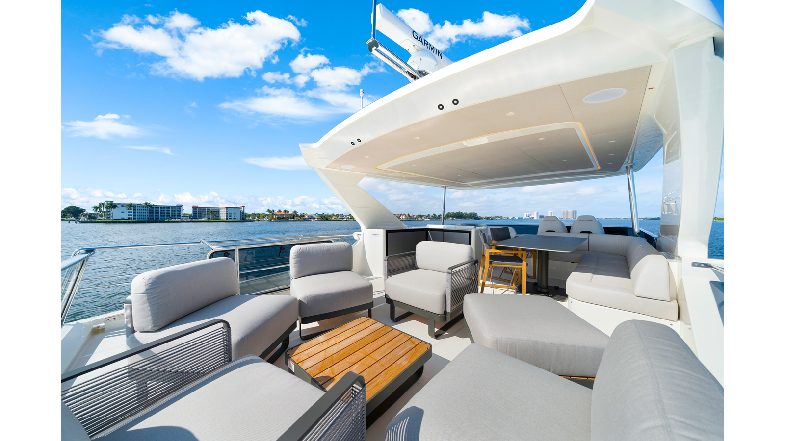 - Smartphone wireless charger on main deck and flybridge dashboards (two)