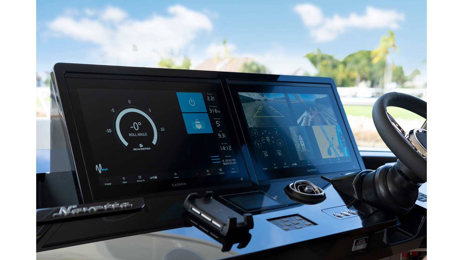 - "Full" display configuration: raised wheelhouse 19" displays (two), Flybridge helm 19" displays (two)