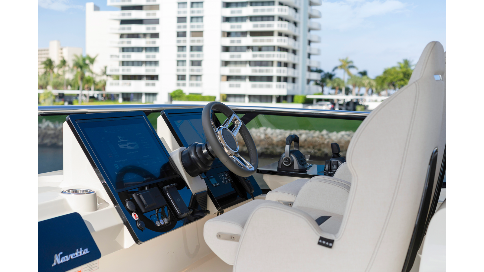 - Extra driving seat on the flybridge dashboard with damping leg (max. weight 120Kg/265lbs), with cover