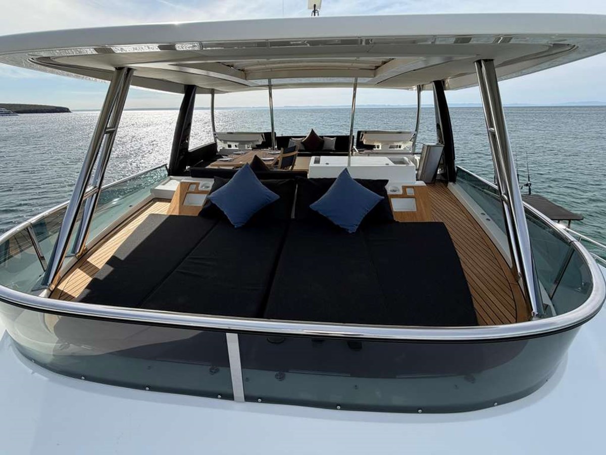 A commanding flybridge with panoramic views, multiple lounging zones, and seamless flow to the aft cockpit and foredeck offer versatile spaces for every moment of the day — from sunrise coffee to sunset gatherings. Inside, the bright, open salon is designed for comfort and connection, surrounded by large windows that keep you immersed in the scenery.
