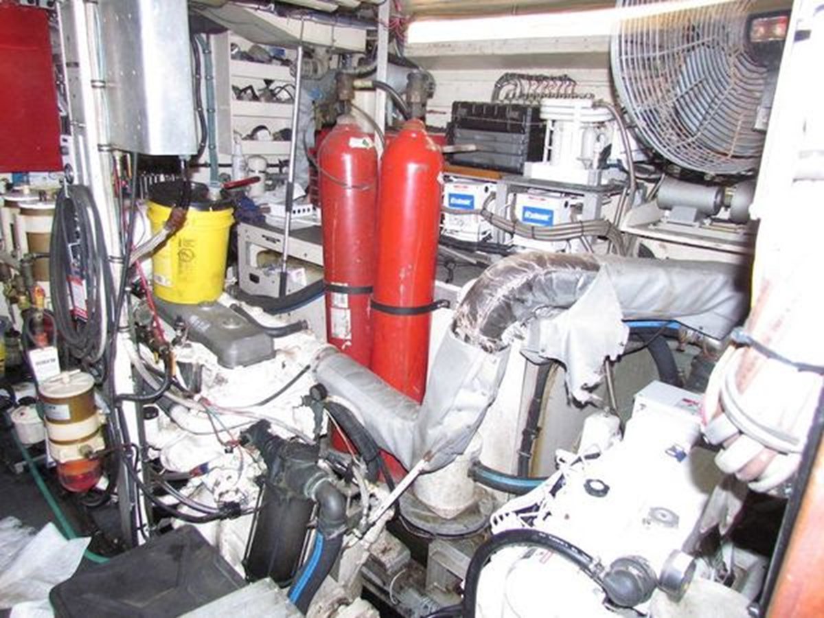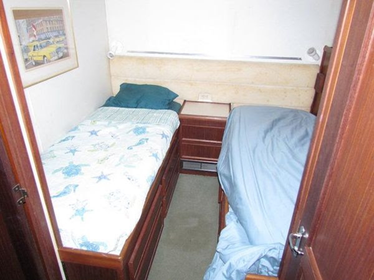 This 1982 65 foot Hatteras long range cruiser is powered by twin Detroit Diesel 671 naturally aspirated engines (serviced july 2022). There are two recently installed (2018) Northern Lights 20kw generators (1500 hours starboard, 700 hours port. Recently replaced gauges at helm. The galley features a whirlpool fridge, four burner stove, microwave, oven, dual sinks, coffee maker. Features include a water maker, stabilizers, windlass w 300 ft chain. Last haulout 2017. Air conditioners include seven new Cruisair a/c units. At the Helm there is a VHF, depth finder, video sounder, track vision satellite receiver, autopilot, bow thruster, Garmin 541s GPS. Fuel capacity: 3000 gal (one gallon per mile fuel usage), 5’5” draft, water capacity: 1200 gallons, (new aluminum water tank). Registered in Florida, USA.