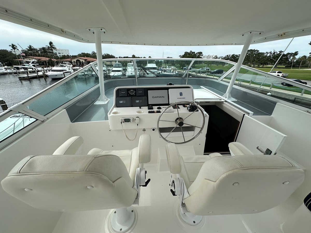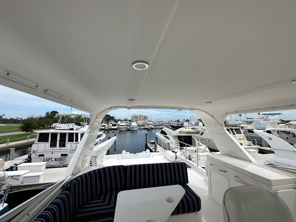 The Flybridge can be easily accessed from the interior staircase between the Salon and Galley or from the Aft Deck ladder. The Pilothouse has doors to port and starboard. The spacious Bridge features a large seating are with dining table, Hardtop with enclosures. Designed for entertaining, there is a 360-degree view for navigation.