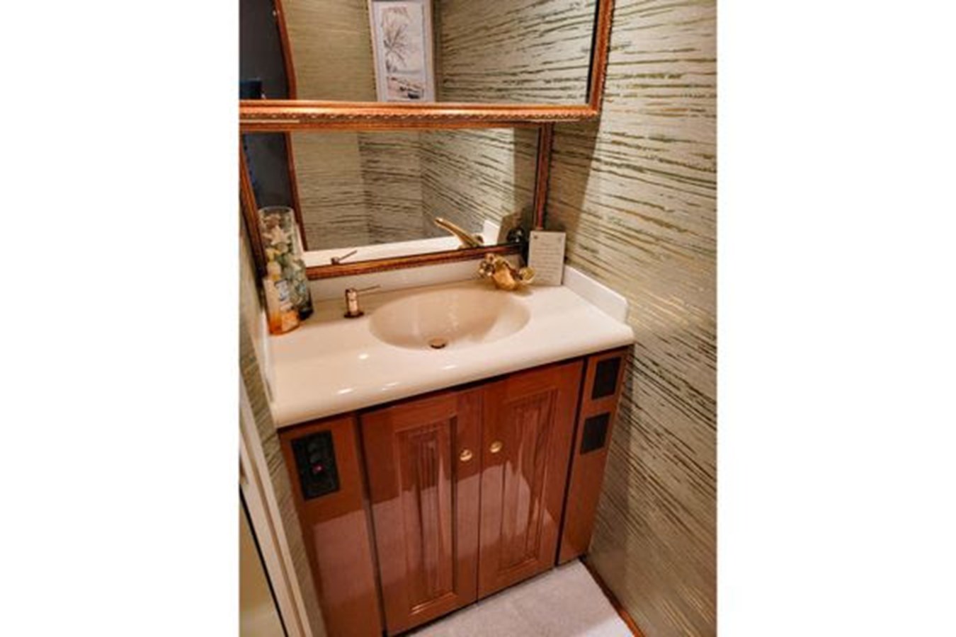 High gloss teak cabinetry throughout
