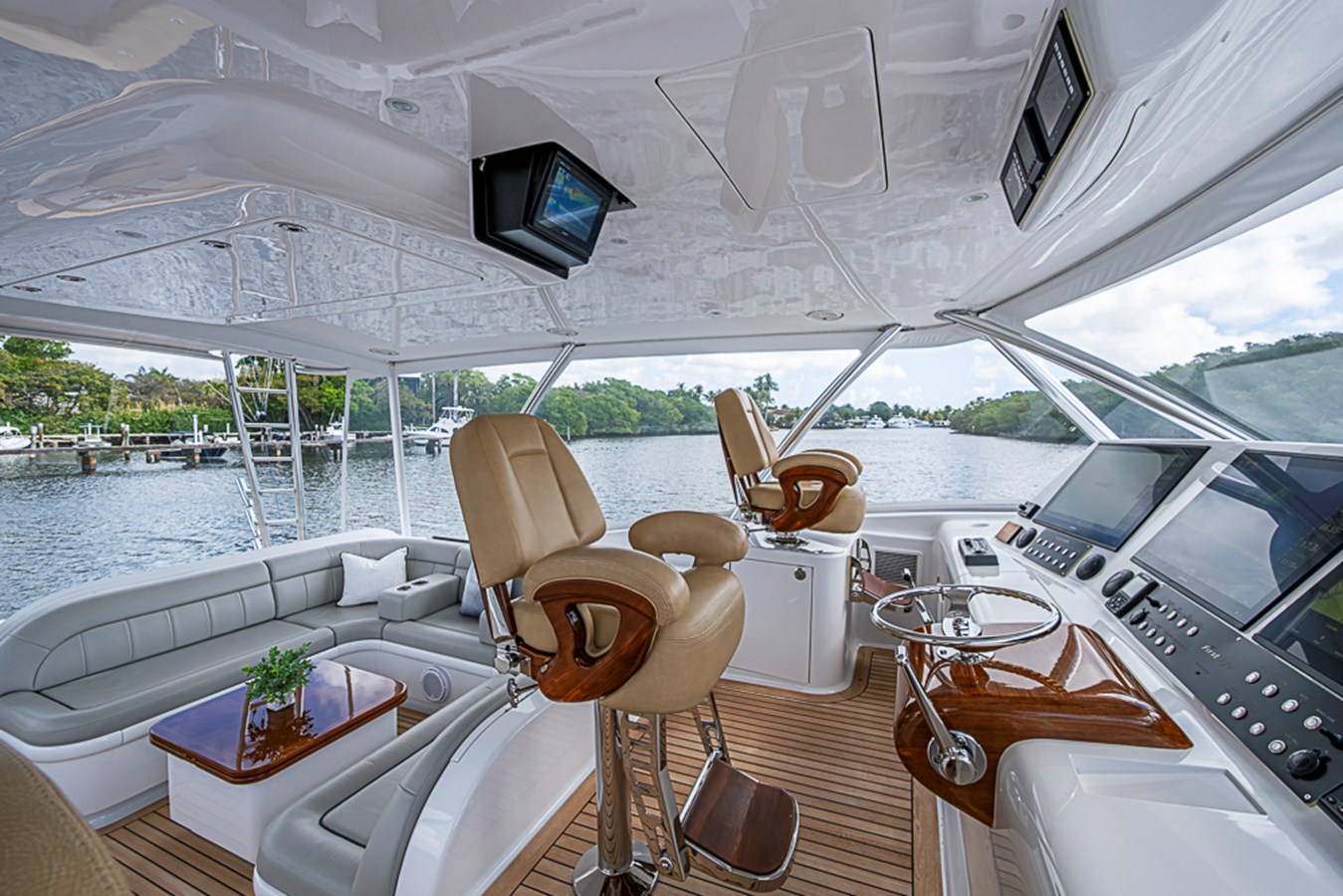 Stepping into the Salon, the transition from hardcore sport fishing machine to refined cruising yacht is immediate. Rich custom woodwork, premium soft goods, and a warm, inviting layout create a space equally suited for entertaining or relaxing after a long day offshore.