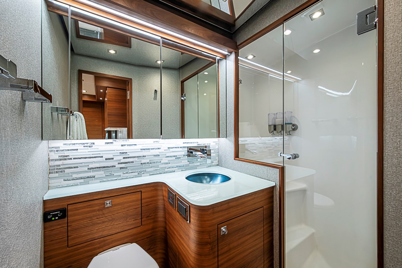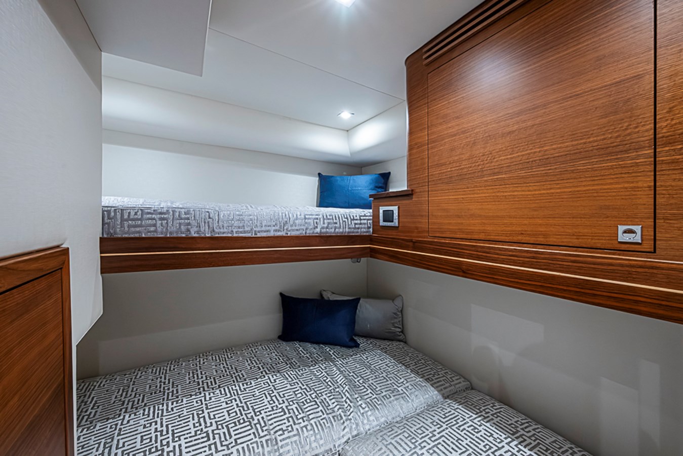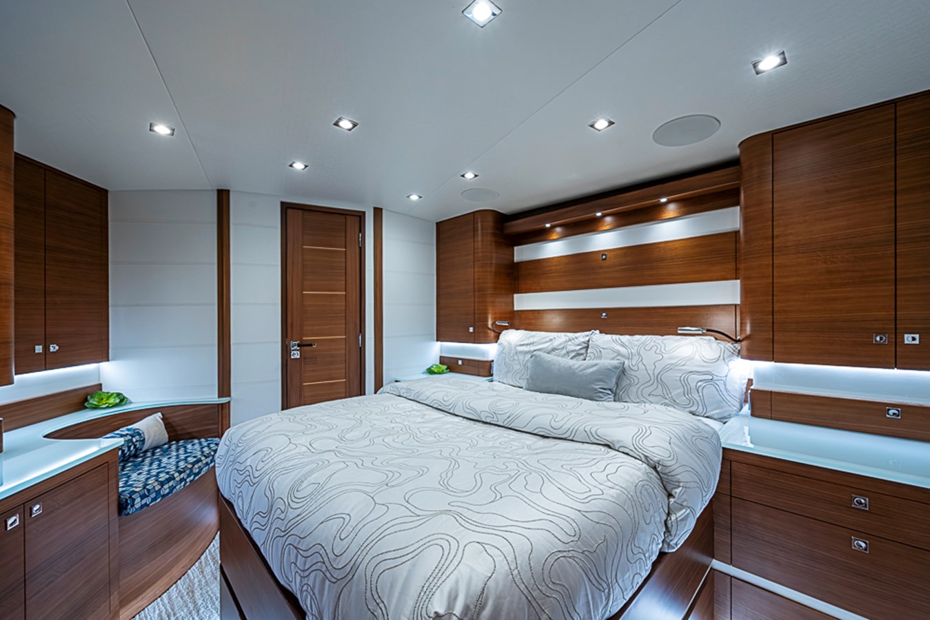 Attention to sound insulation and ventilation ensures quiet, comfortable rest even after extended runs. The level of craftsmanship mirrors that of much larger custom yachts, making this cabin a standout feature for owners who value both performance and livability.