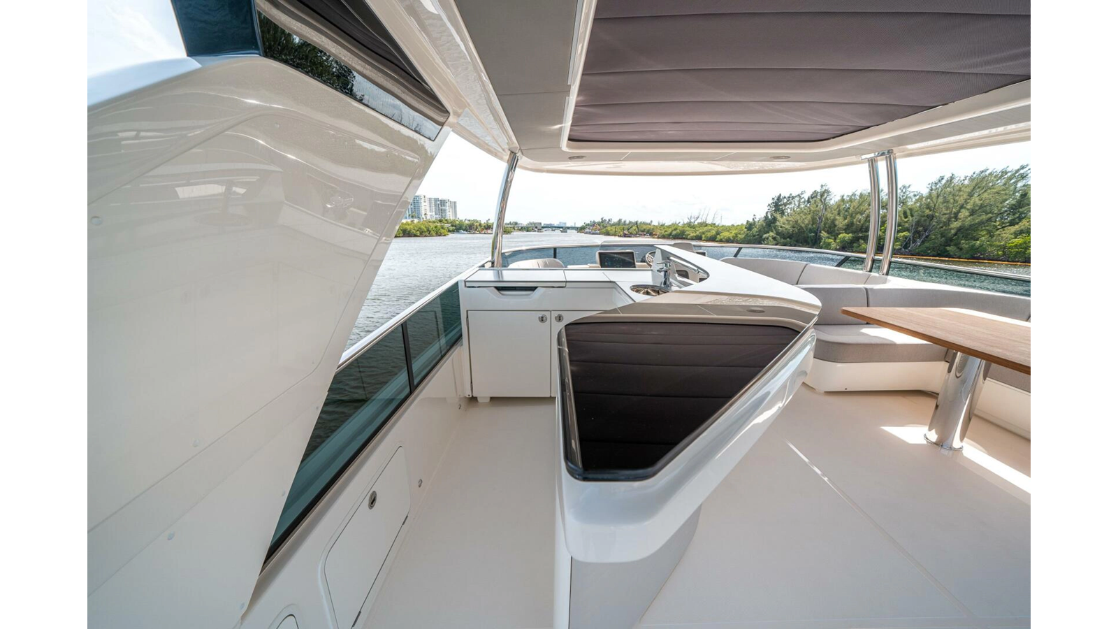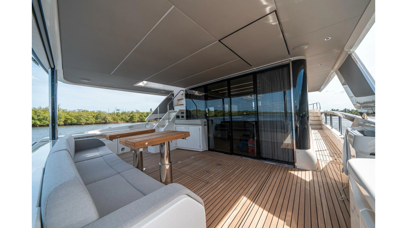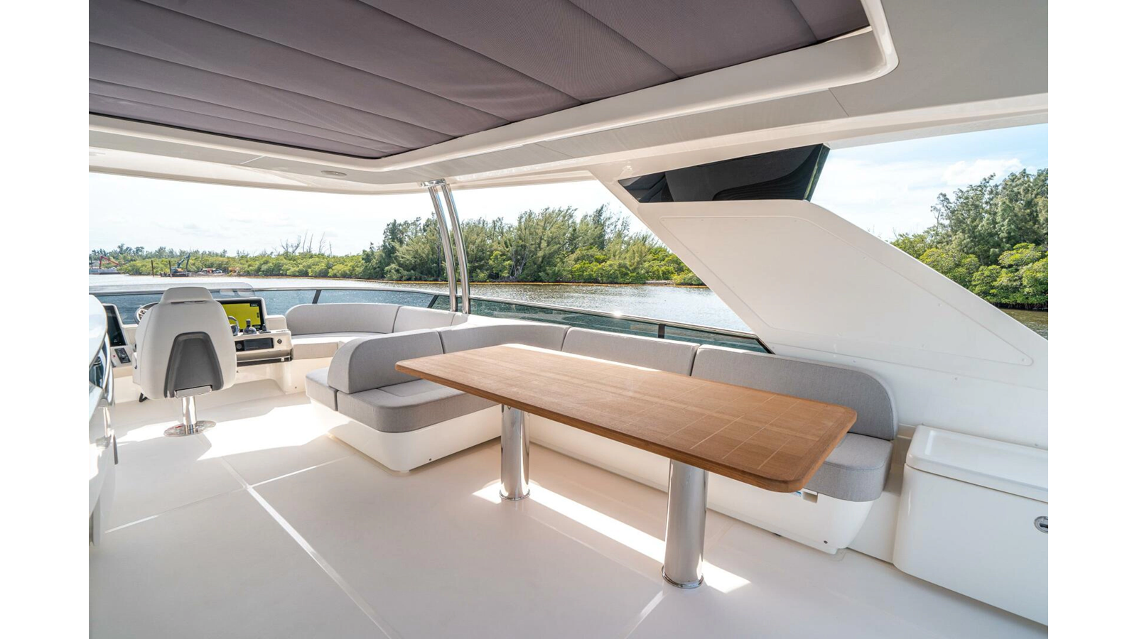 - Retractable electric sunshade on the aft of the flybridge
