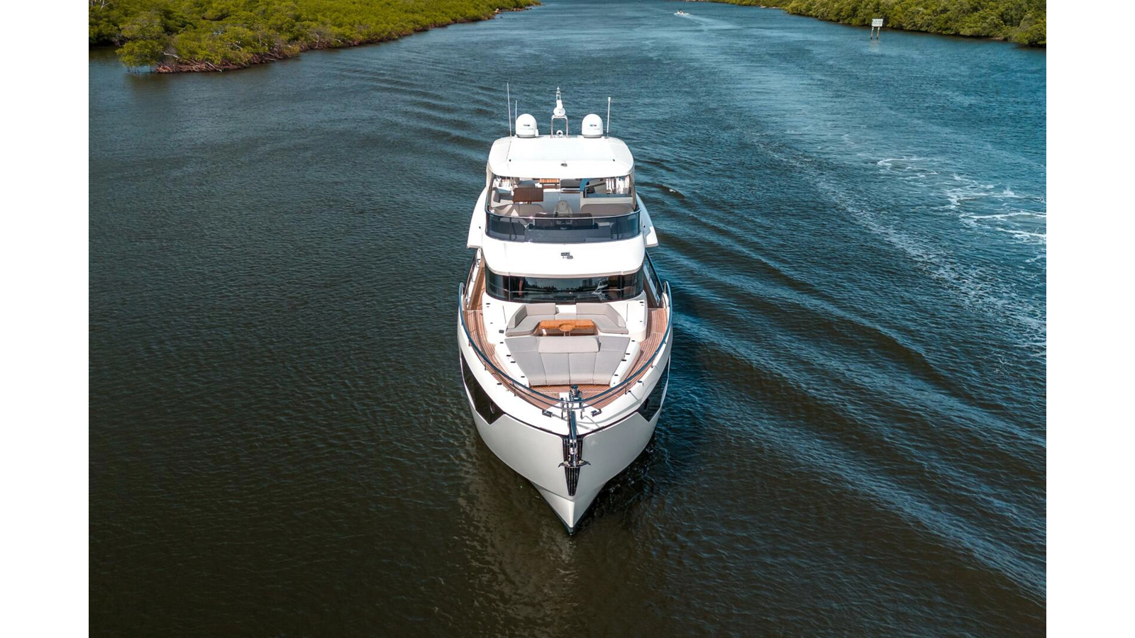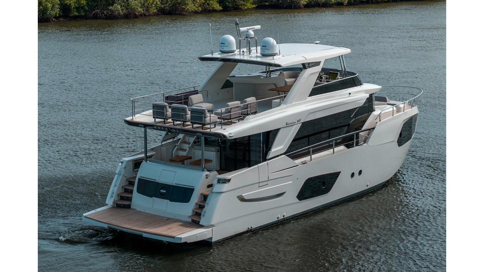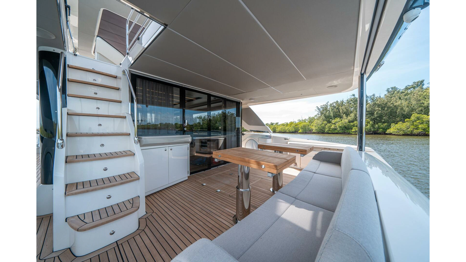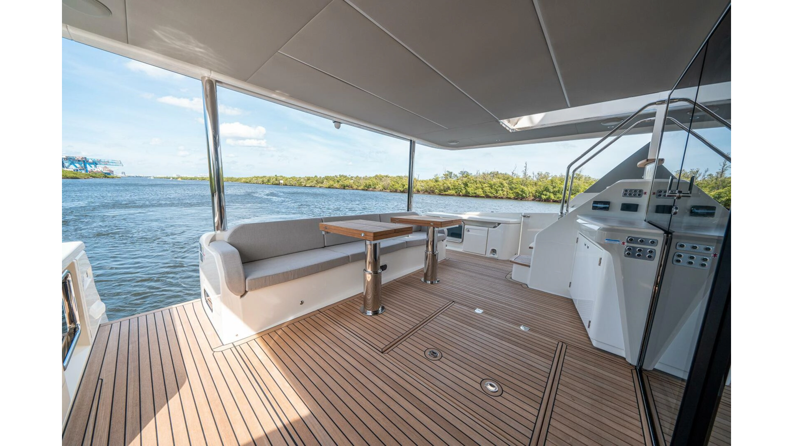 - Retractable electric sunshade on the aft of the flybridge