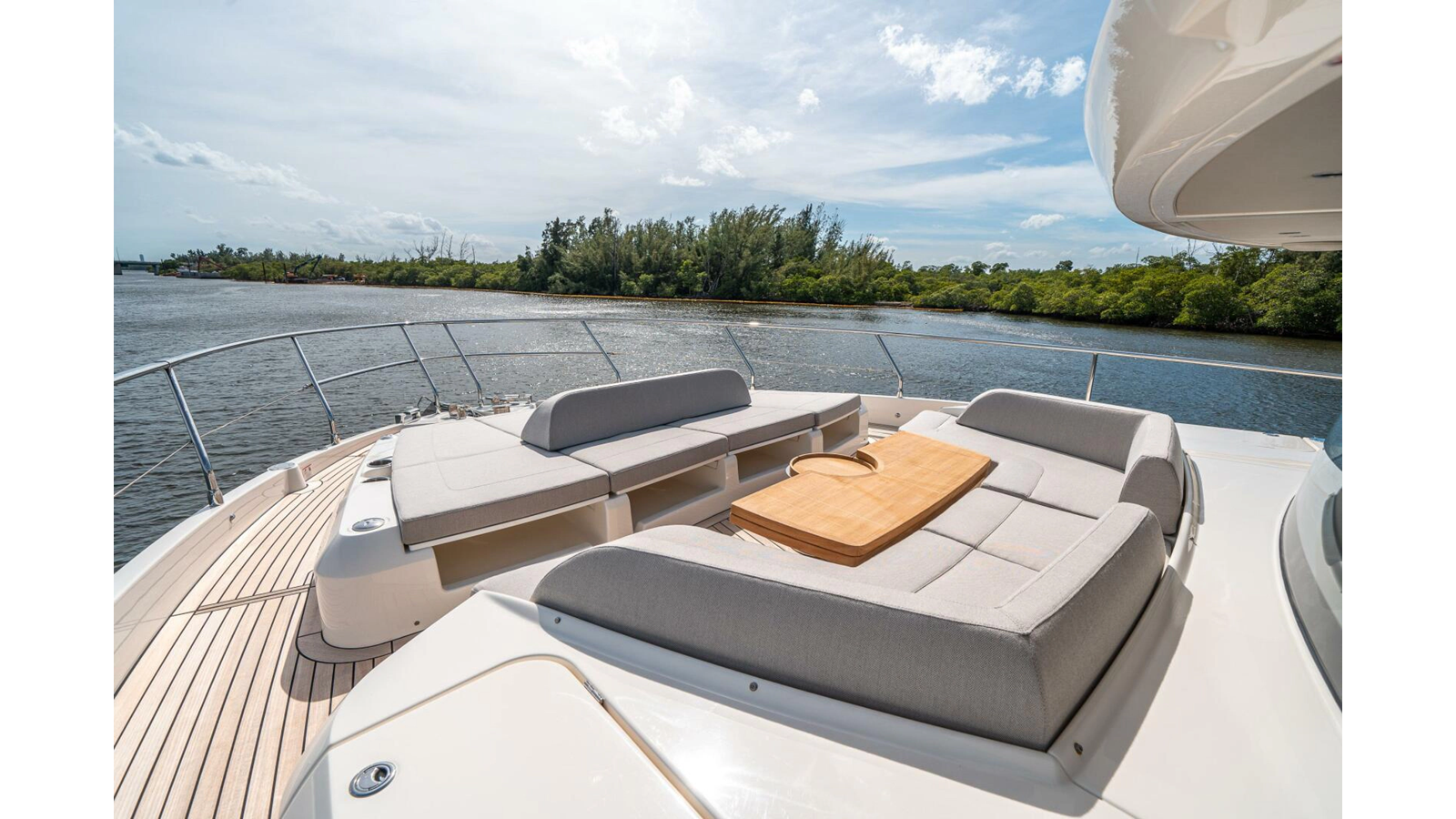 - Wide area in the bow for mooring with solid teak-covered floor.