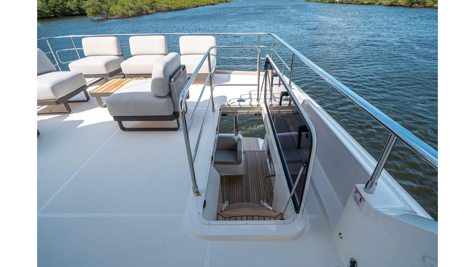 - Storage compartment under the flybridge access stairway.