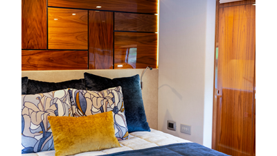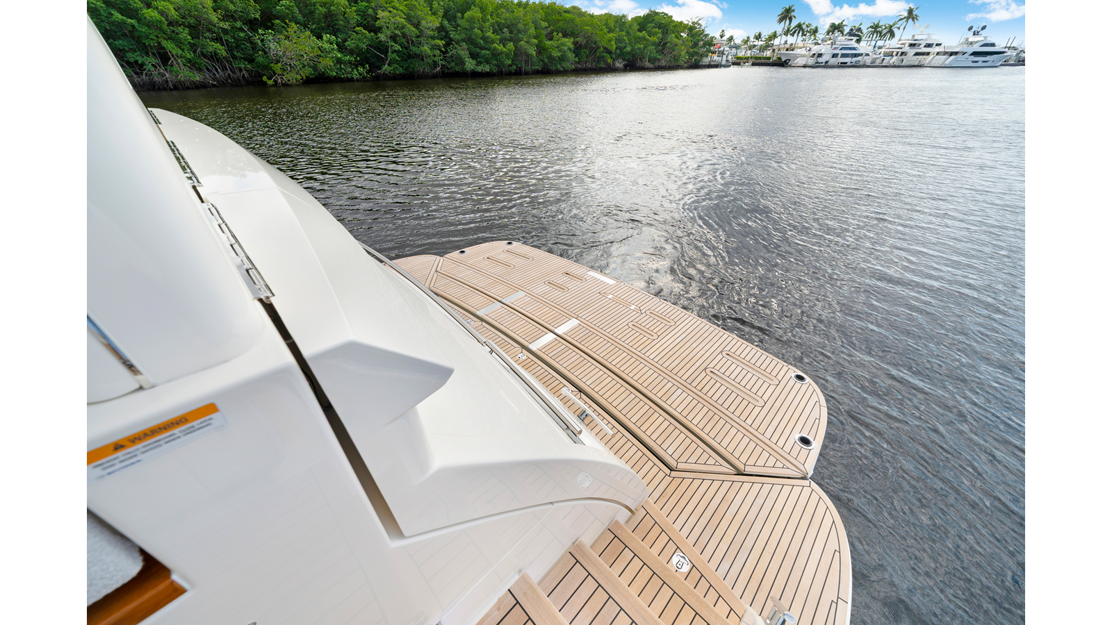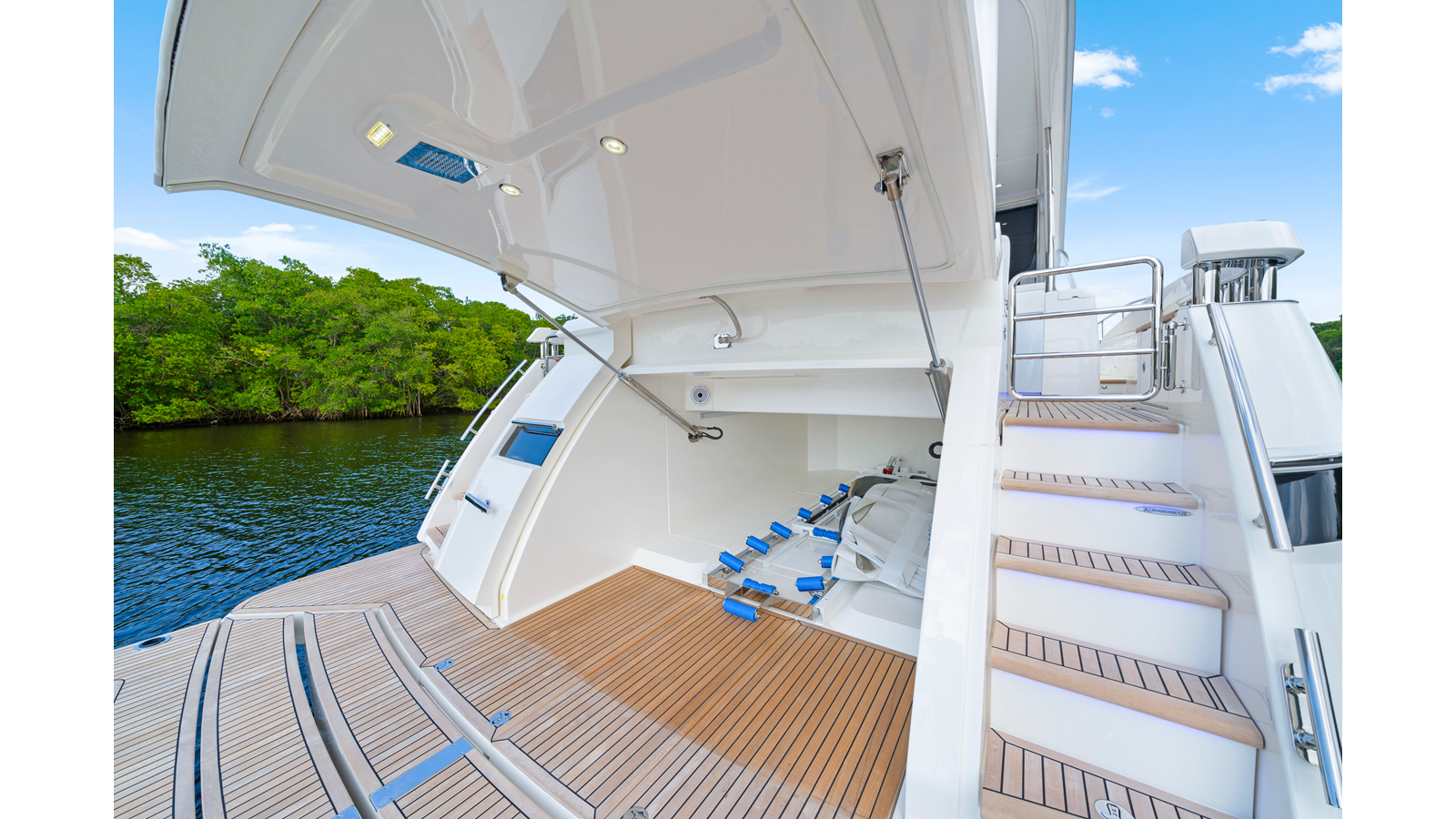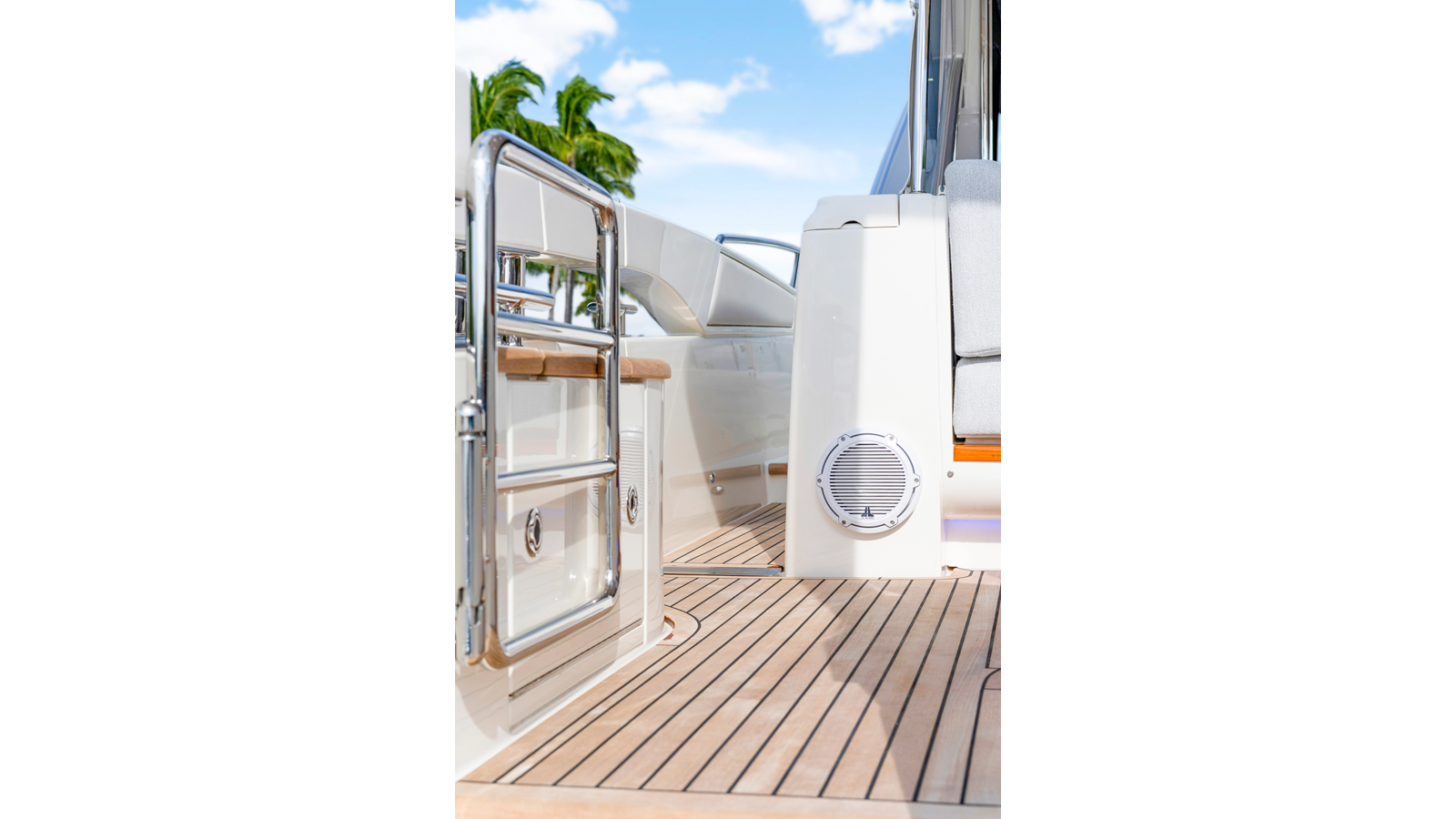 - Aft deck speaker upgrade, with tender garage speakers - Includes 8 channel ampliíer, additional 2 x 7.7" speakers and 1 x 8" subwoofer ítted to the aft deck and 2 x 6.5” speakers to the tender garage with ARX wireless remote.