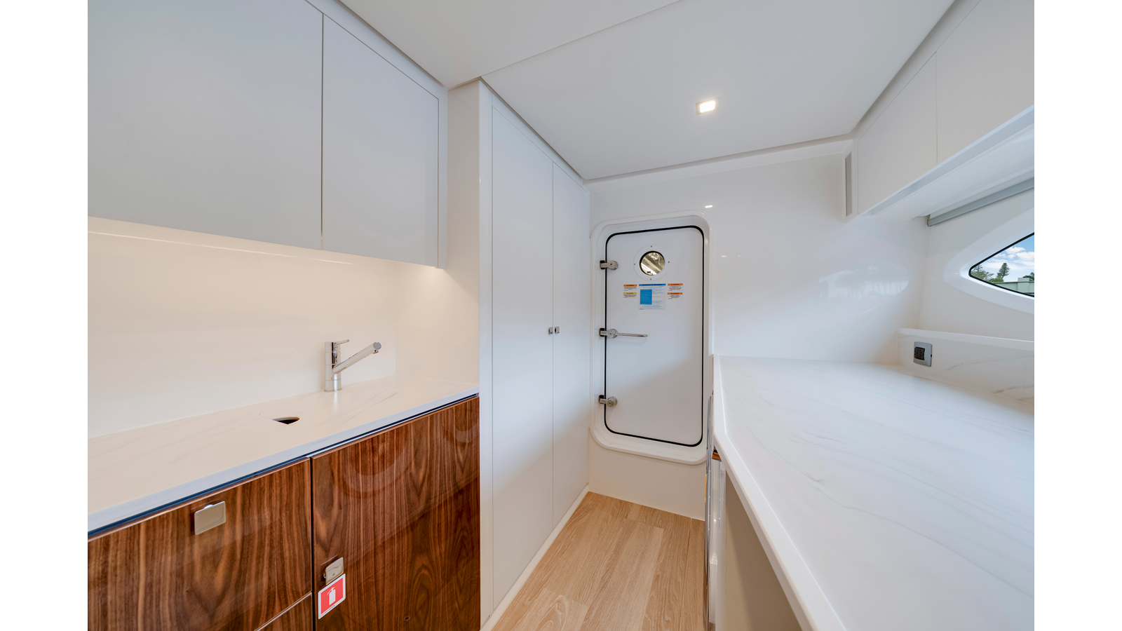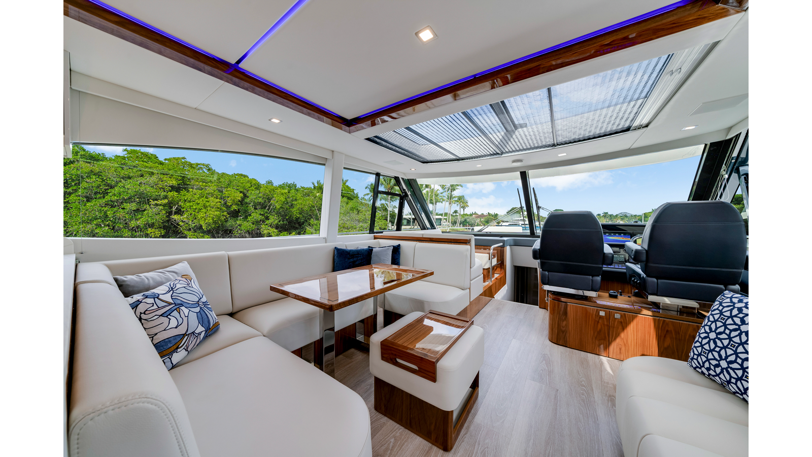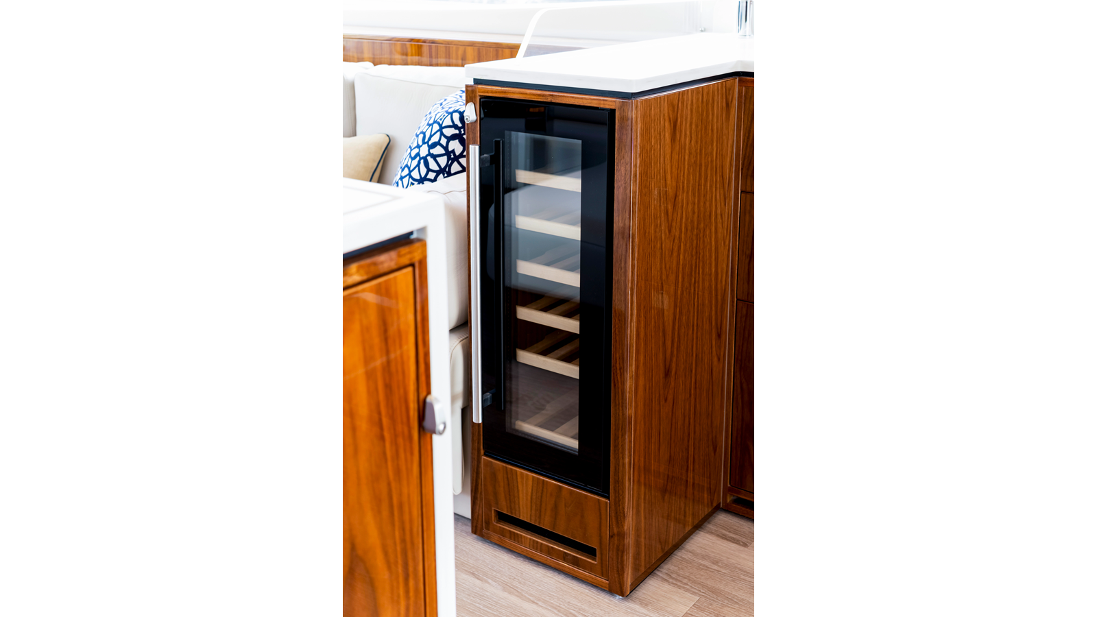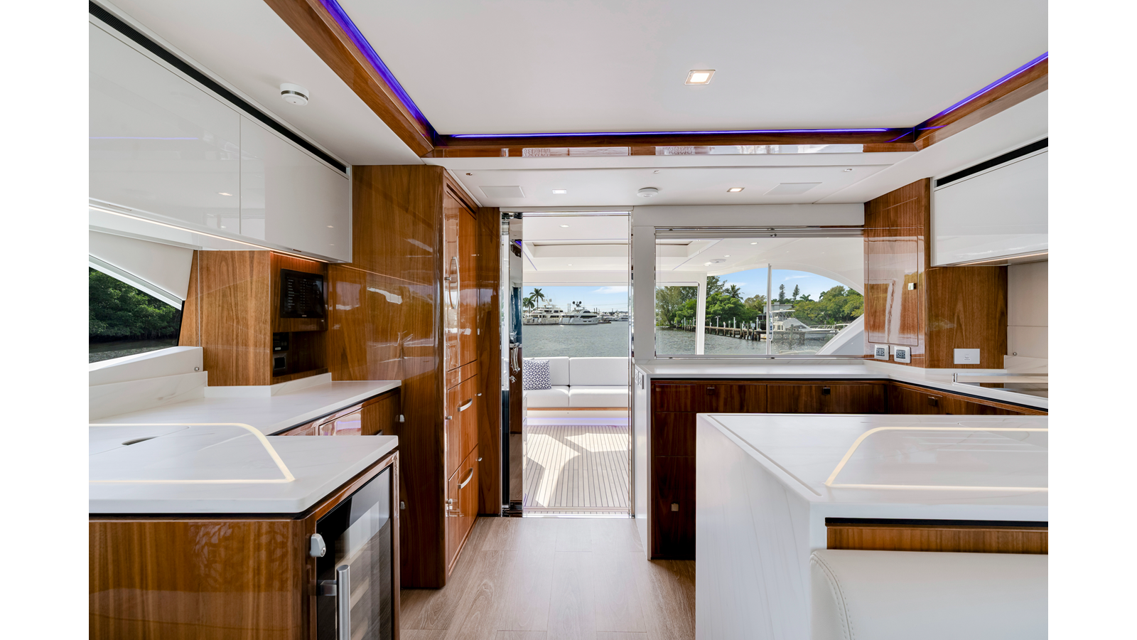 Slide open the saloon door. Then lower the electric galley window with the push of a button. Now the aft deck flows into the saloon creating one grand living and entertaining space with two designer dining areas.
