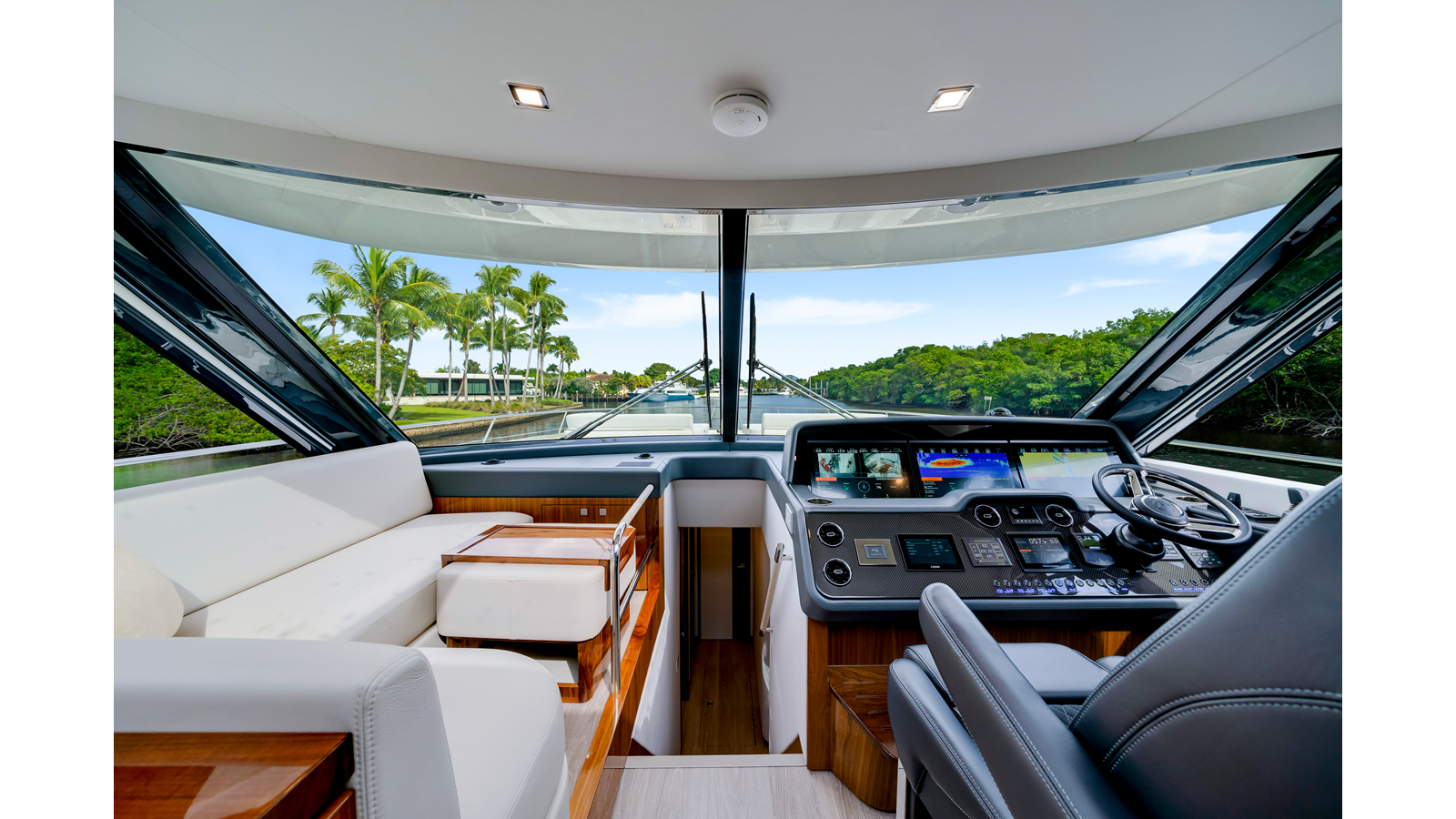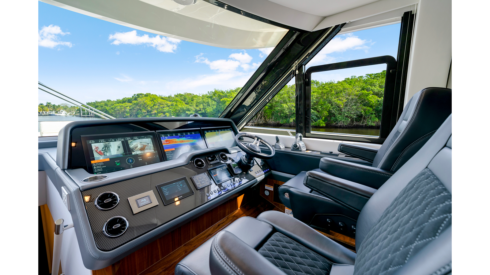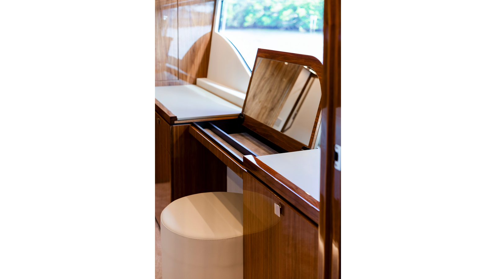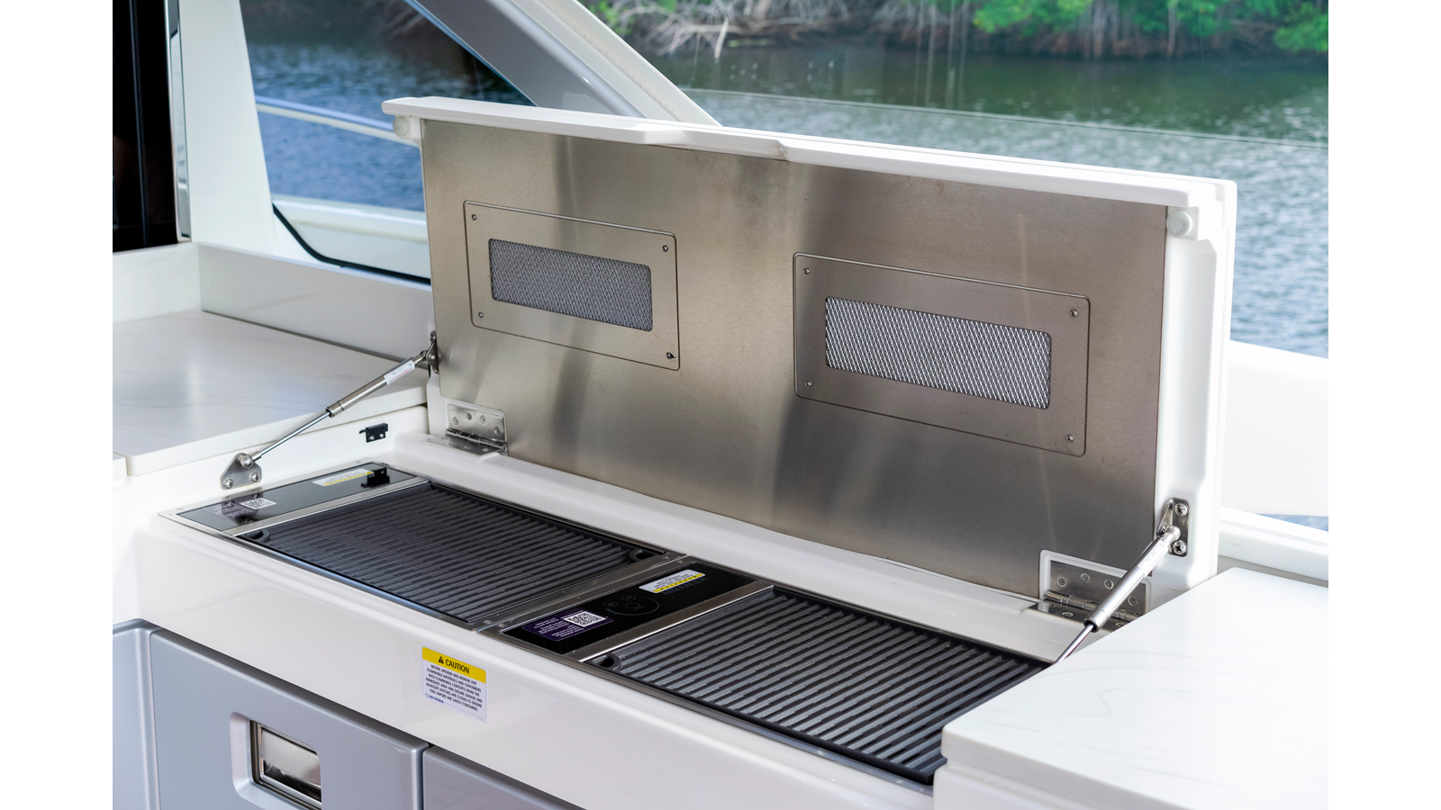 Slide open the saloon door. Then lower the electric galley window with the push of a button. Now the aft deck flows into the saloon creating one grand living and entertaining space with two designer dining areas.