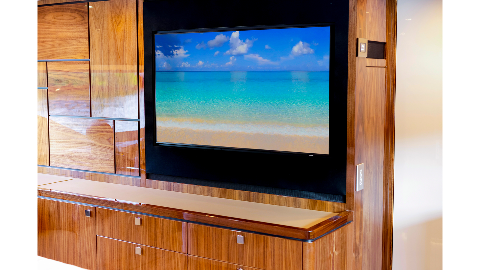 - Prep for future SAT TV installation, includes running HDMI & CAT 6 cables from saloon to a TV location & SAT TV circuit power supply - To all TVs on board - Saloon, Mezz, Master Cabin, FWD Cabin & Port Cabin