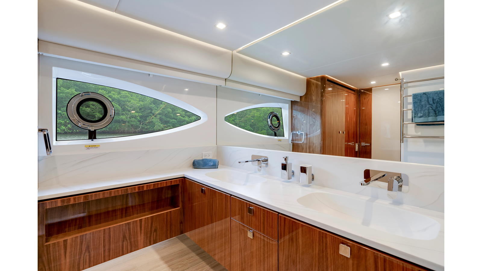 Riviera’s 6800 Sport Yacht has so many separate entertaining areas that family groups, friends and couples can all find their own space to enjoy the world around them. Enjoy the sunshine on the forward deck, or entertain on the all-weather aft deck with a sunroof to invite the sunshine or stars. Relax on one of three lounges in the saloon, also with the luxury of a sunroof.