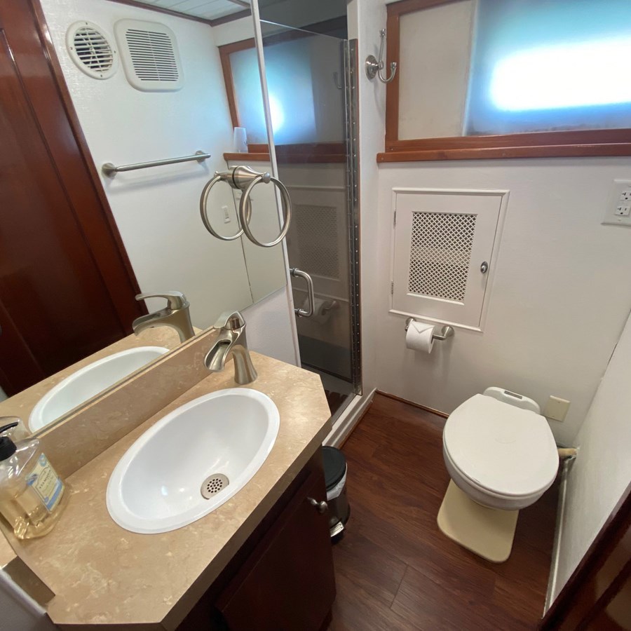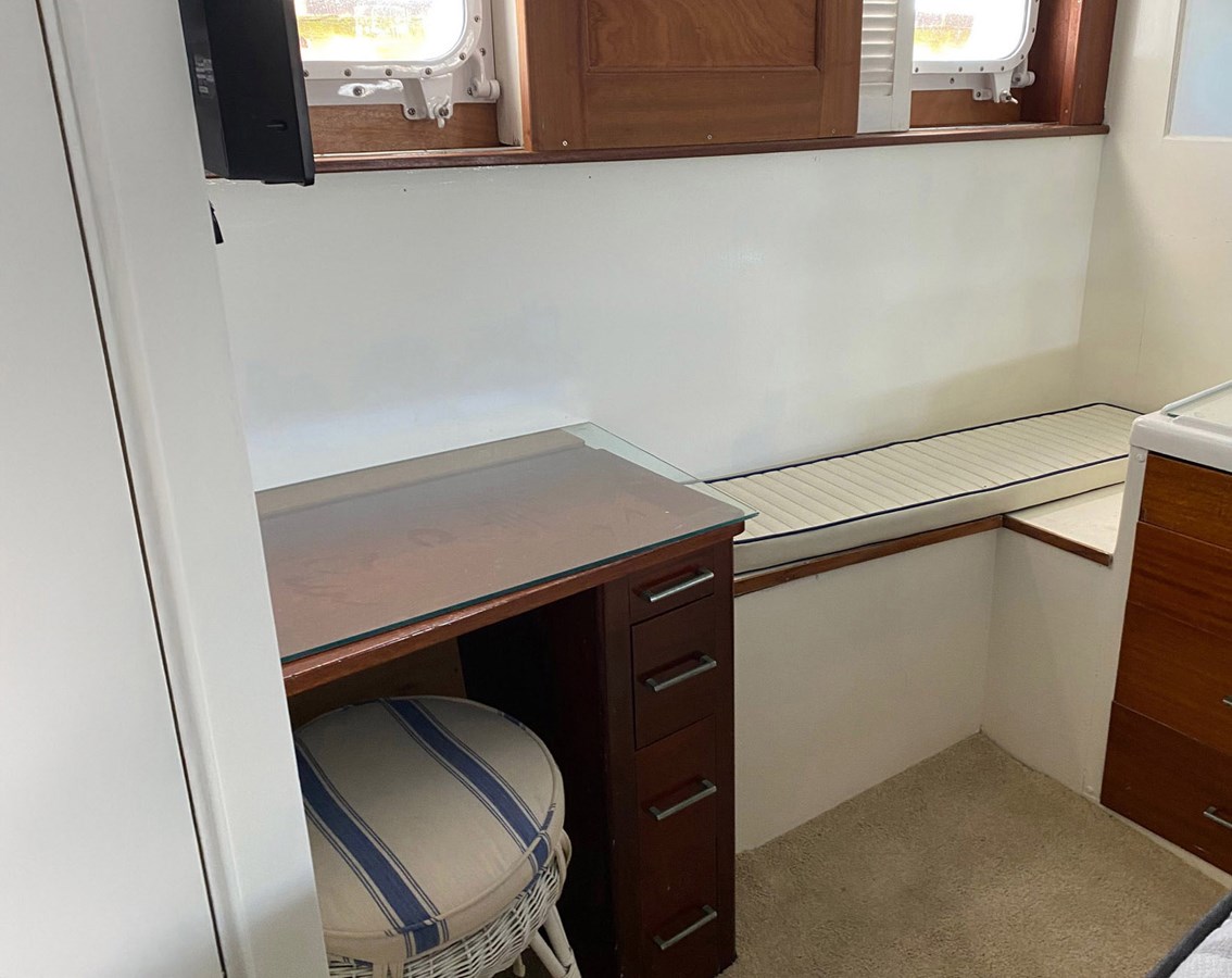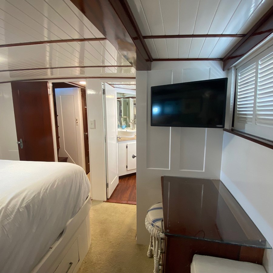 Powered by twin diesel engines, she offers dependable performance, while the addition of a bow thruster makes docking and close-quarters maneuvering straightforward and stress-free Modern upgrades blend seamlessly with her classic character, including Garmin electronics at the helm and Starlink connectivity, allowing owners and guests to remain connected whether cruising the coast or relaxing at anchor.