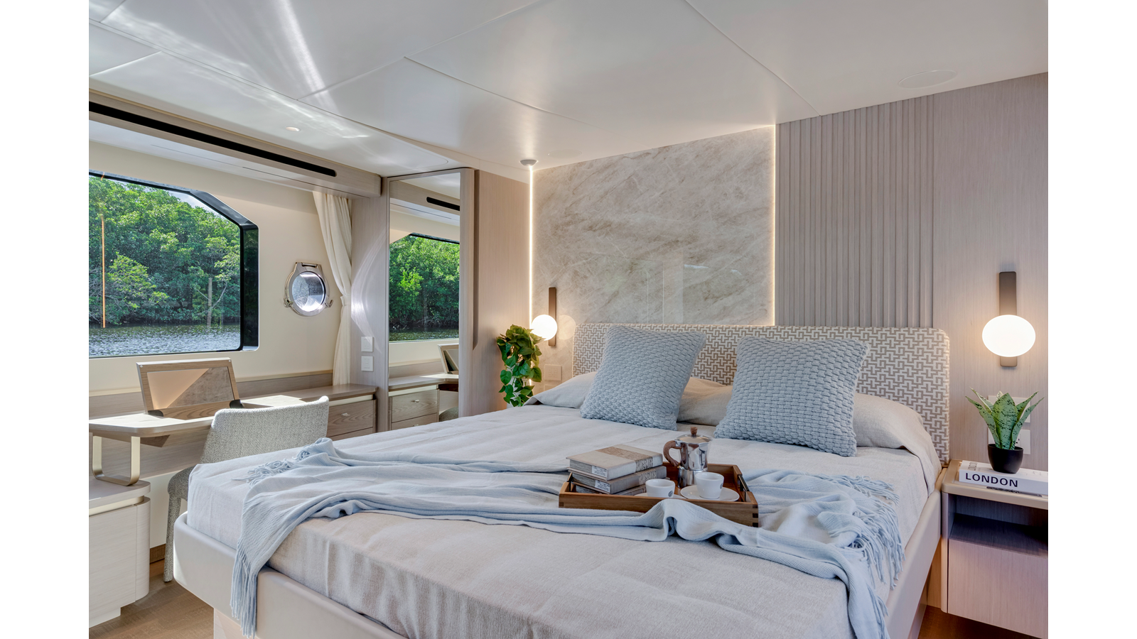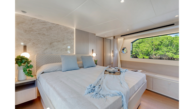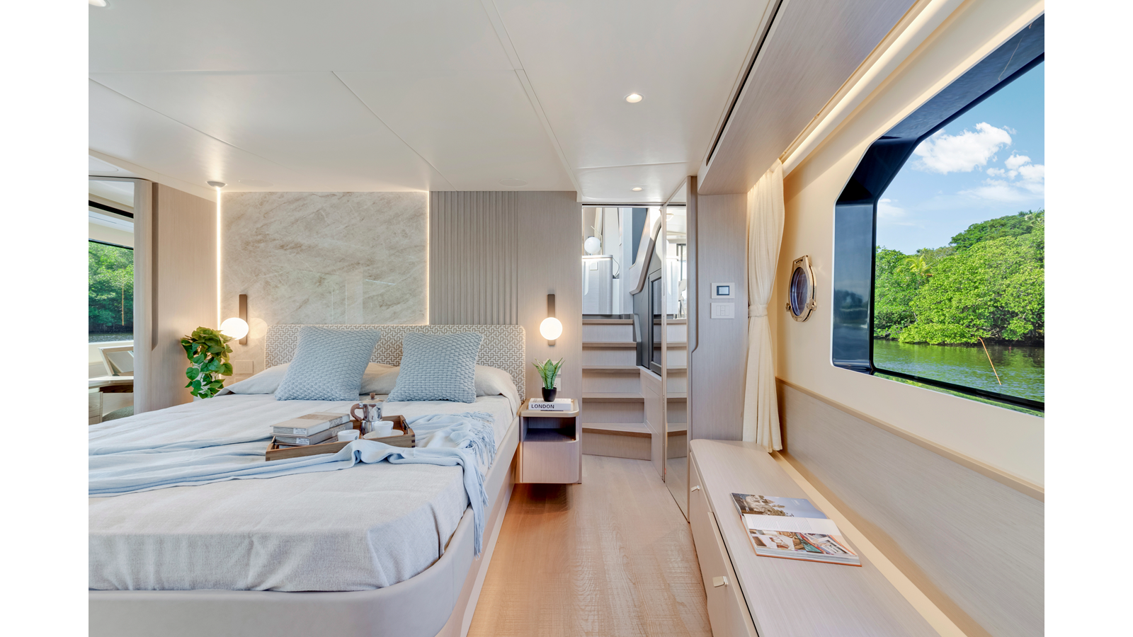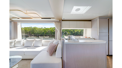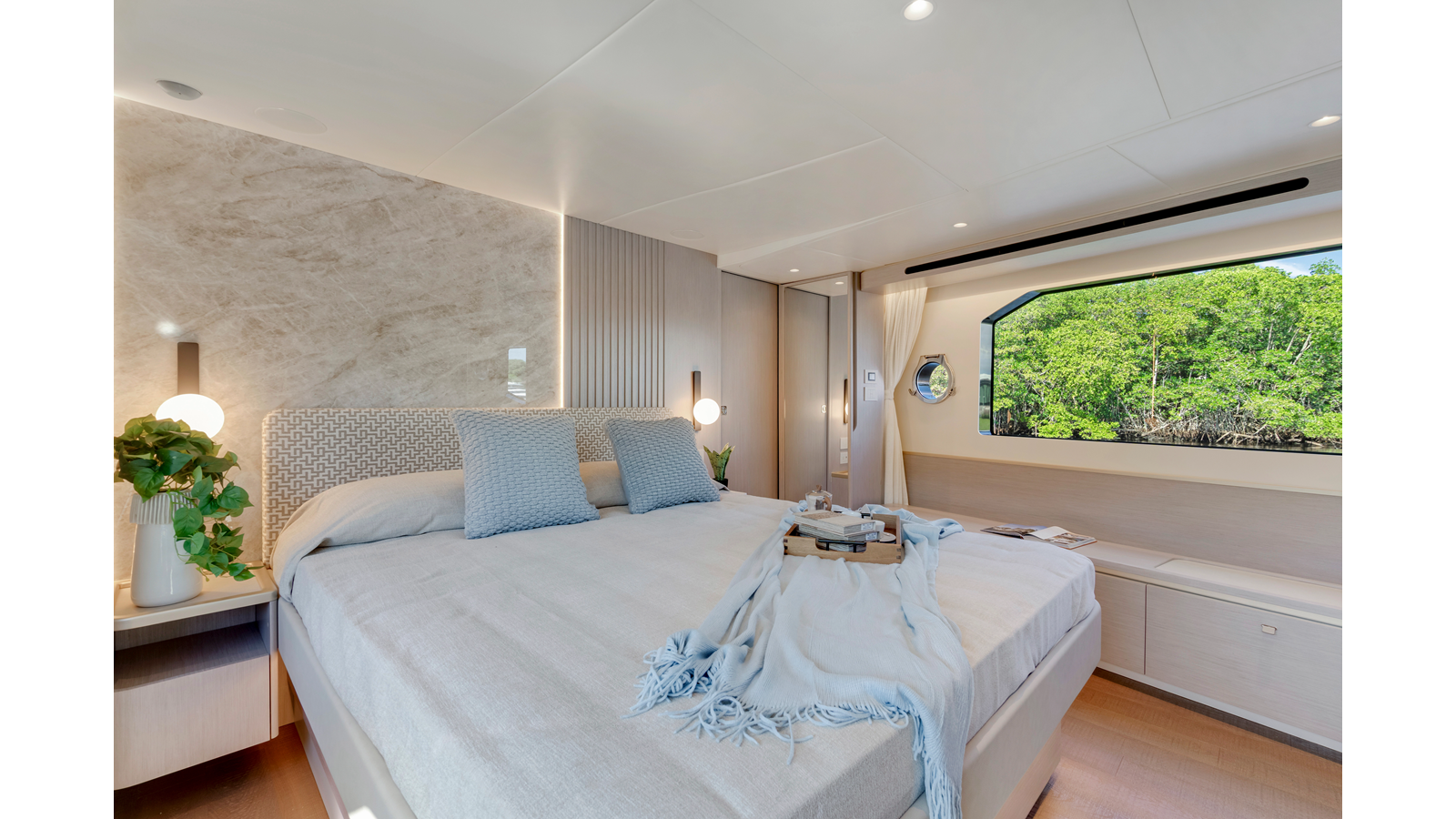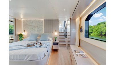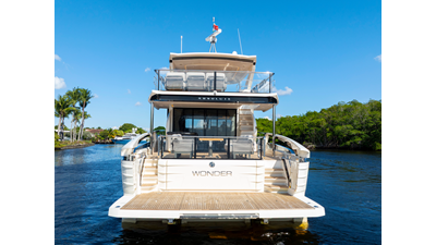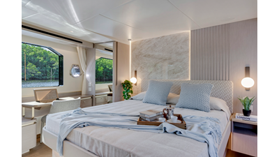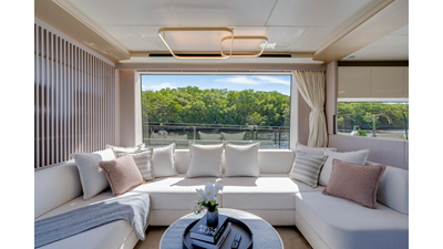 The Absolute 70 FLY “The Absolute Wonder” is a sophisticated flybridge yacht with seamless flow between interior and exterior. She features a sleek, sliding six-panel glass door opening to the cockpit, a step-free flybridge with modular furnishings, and a vertical-lowering swim platform for effortless water access. Below decks, her four-cabin layout (including a full-beam master and a VIP) plus crew accommodation deliver an exceptionally comfortable onboard experience. Powered by twin Volvo Penta IPS1350 engines, she combines performance, elegance, and modern design.