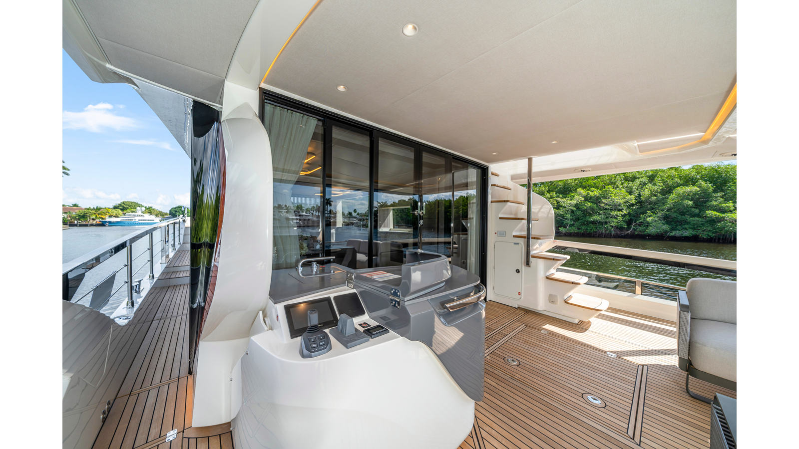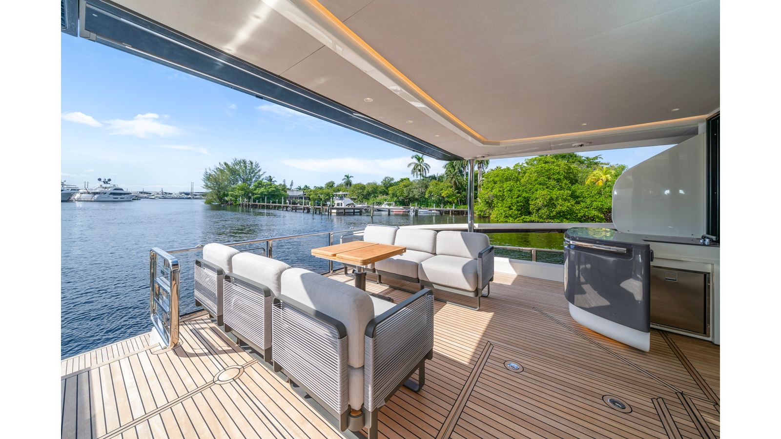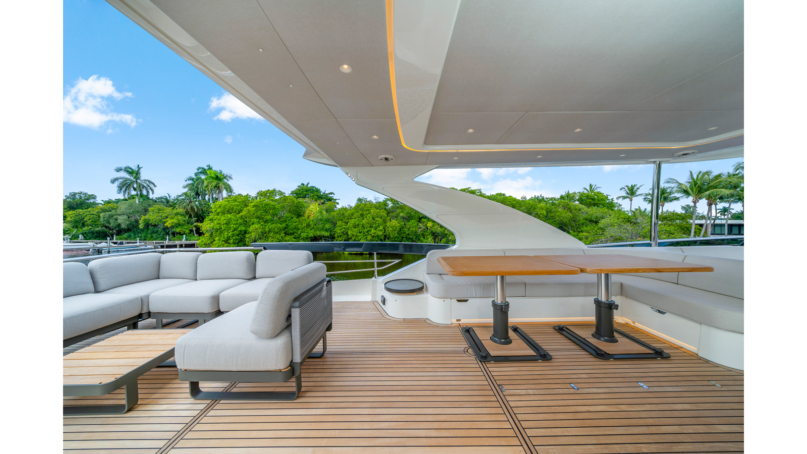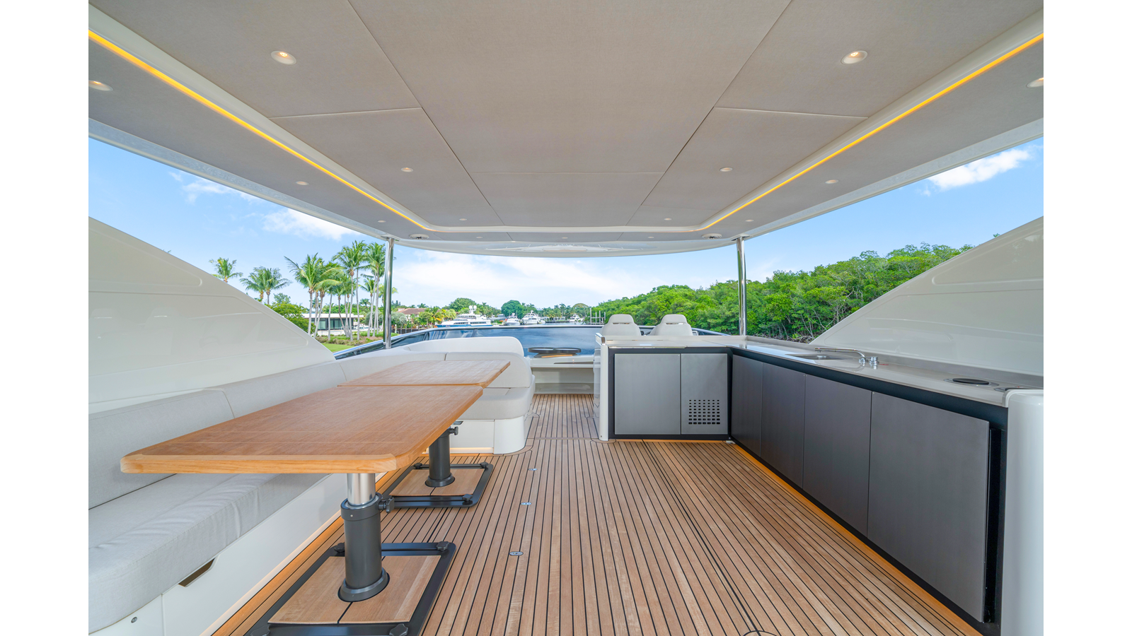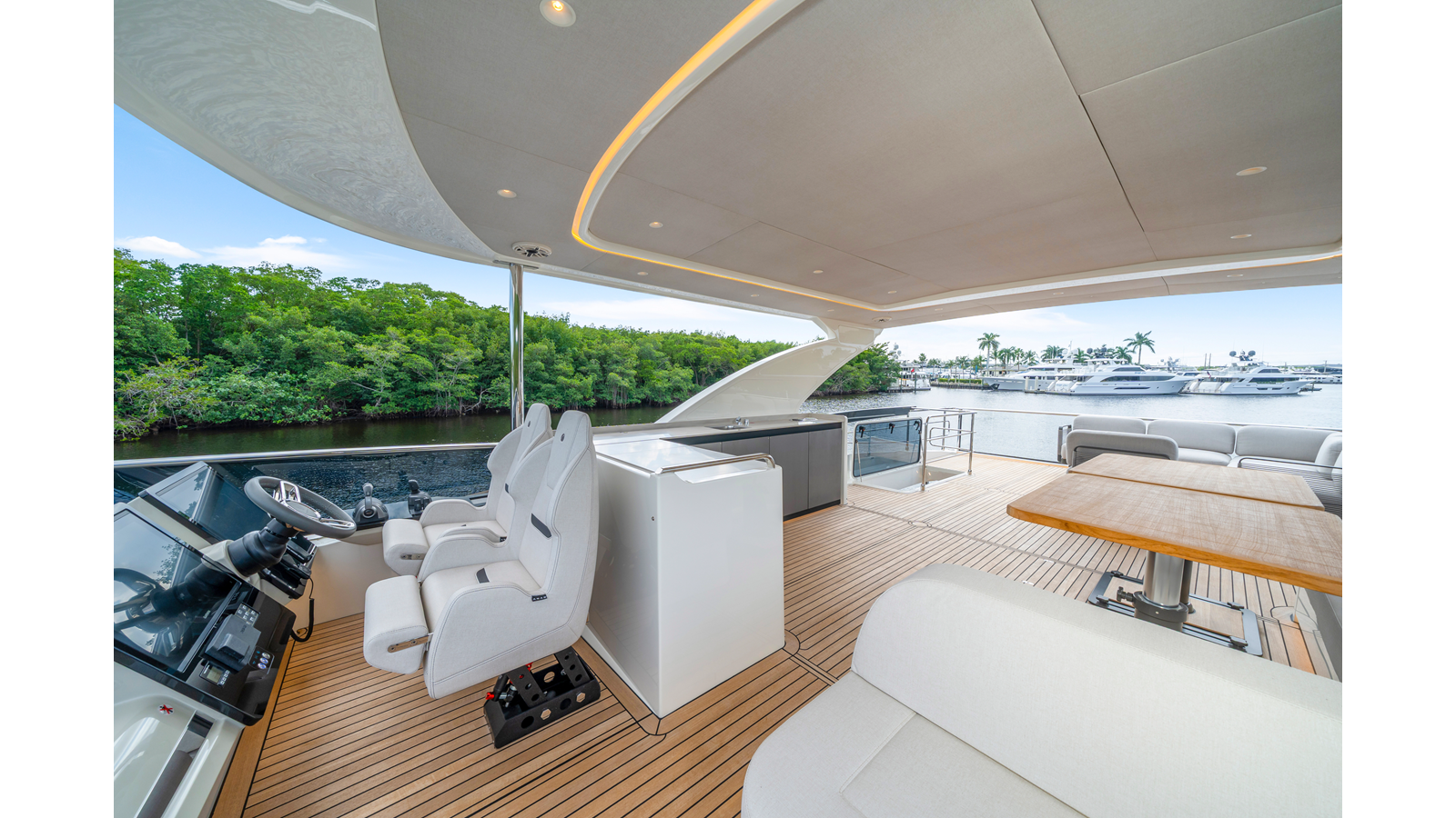 - Flybridge teak table with chairs (3) and covers instead of STD ceramic table with chairs (3)