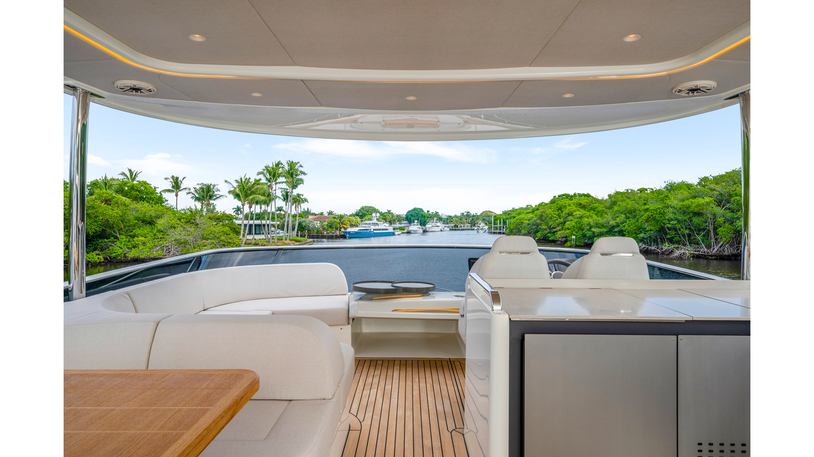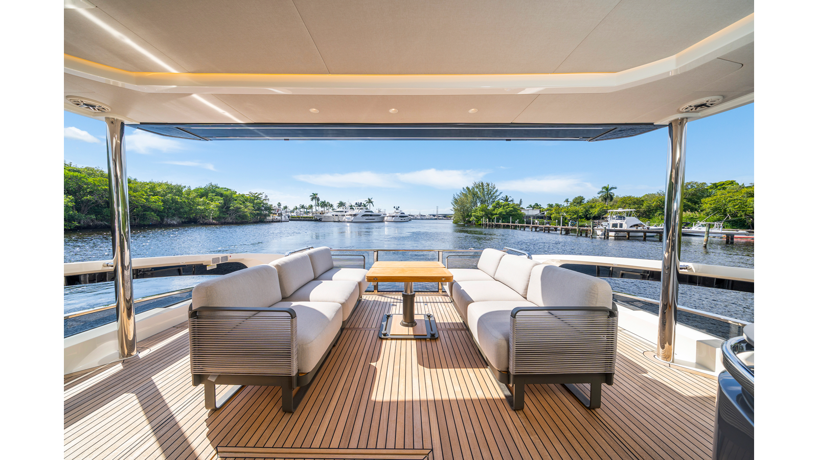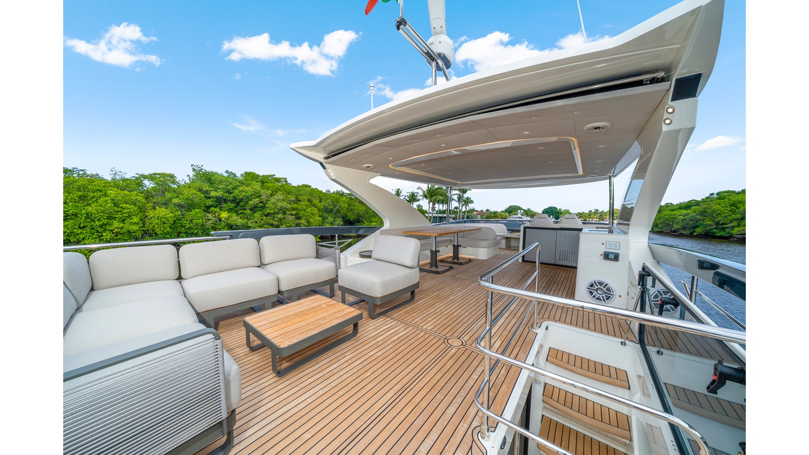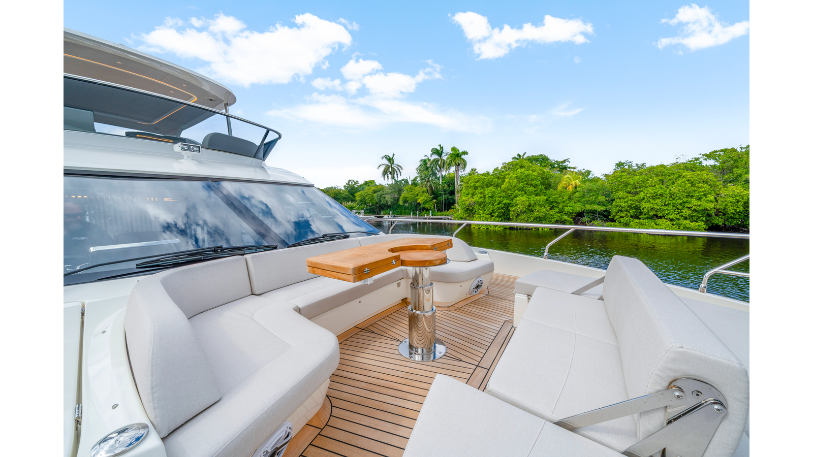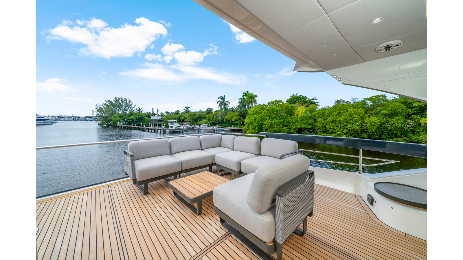- Flybridge teak table with chairs (3) and covers instead of STD ceramic table with chairs (3)